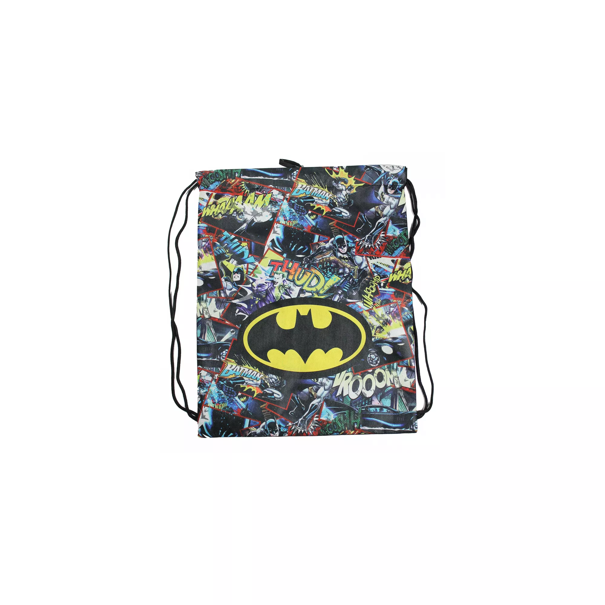 You might just take off and fly from door to door in this officially licensed Batman Drawstring Backpack. Sac with comic character print design and classic superhero logo cinches when you pull the strings so you'll be able to keep your candy safe from harm's way.