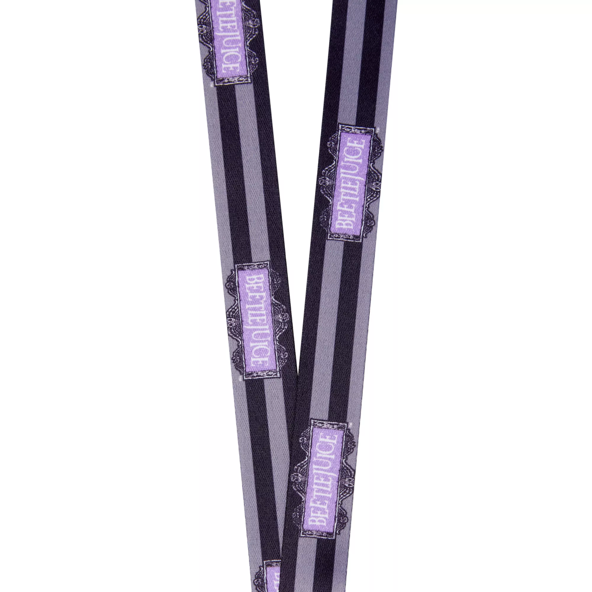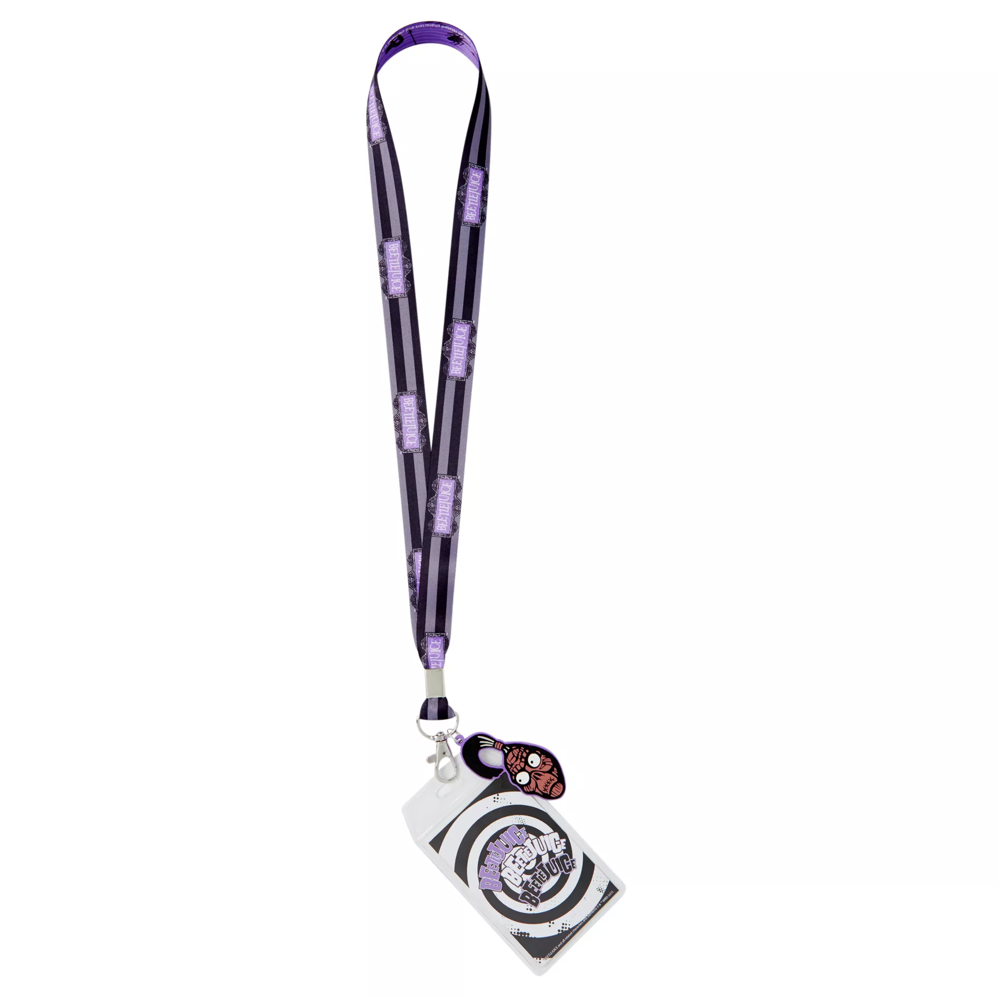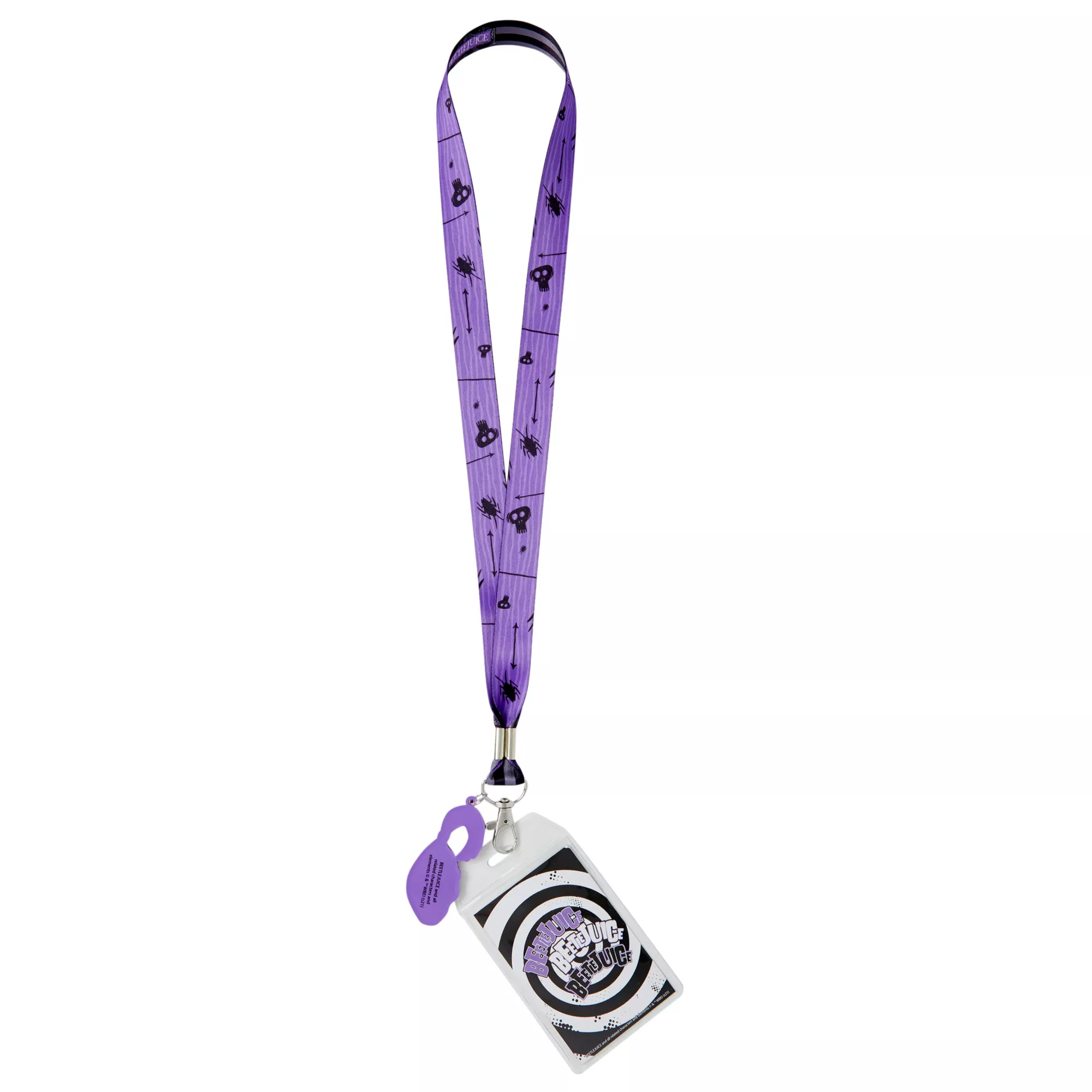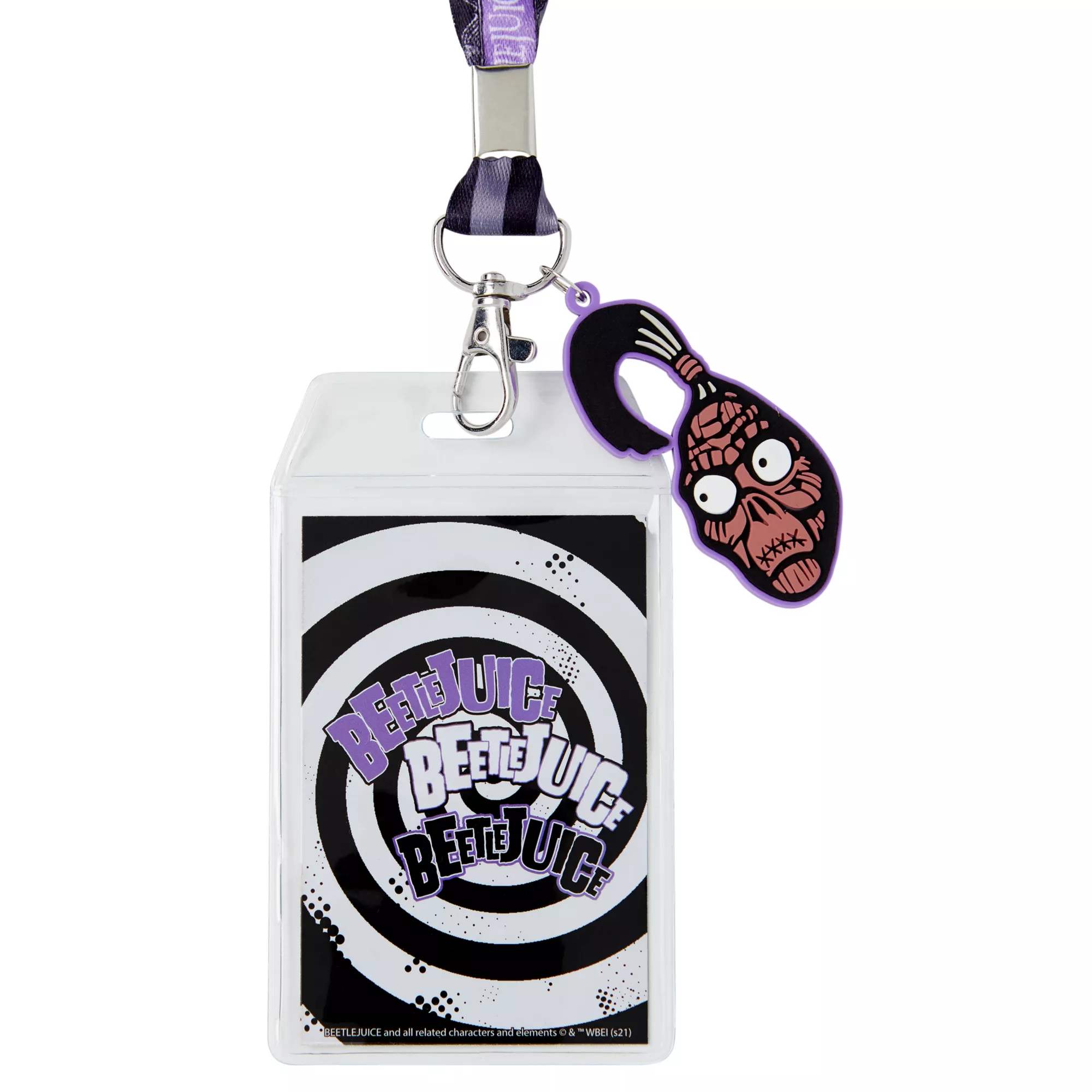 Carry your keys and ID and show off your favorite movie with this fun Beetlejuice lanyard! This lanyard keychain says Beetlejuice (three times!) on it and has a charm of the shrunken head guy. It's perfect for any Beetlejuice fan.