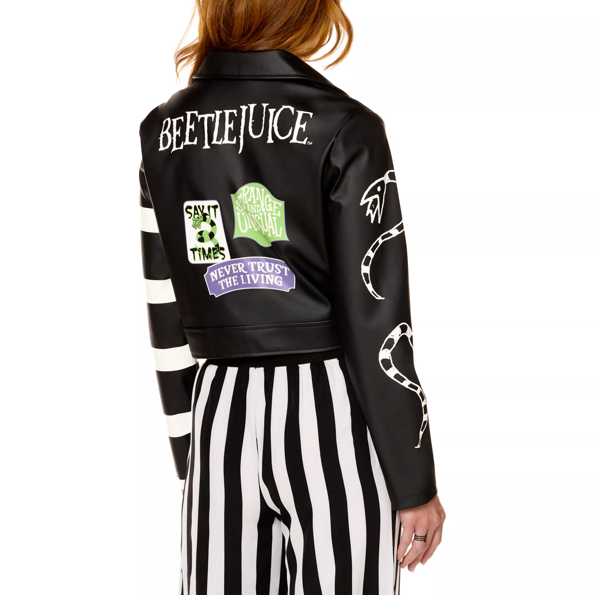 Add some edge to your outfit with this officially licensed Beetlejuice Leather Jacket. Rep your favorite movie with this stylish jacket, it's show time!