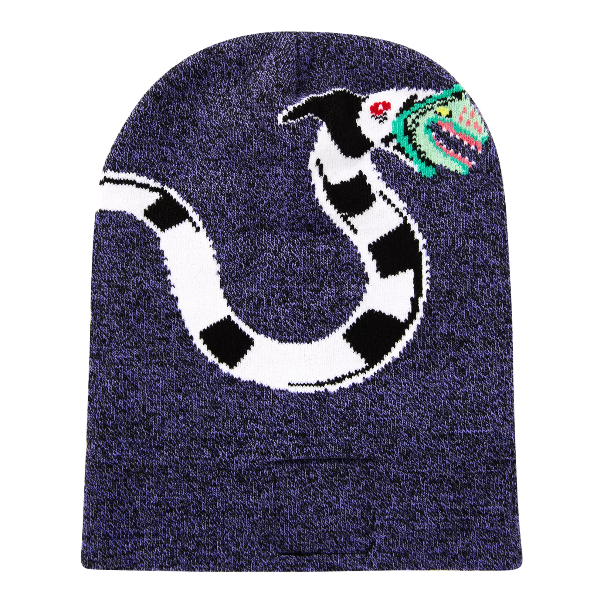 Show your love for the strange and unusual with our officially licensed Beetlejuice Sandworm Beanie! Decorated with a sandworm design, this black and purple beanie is perfect for any Tim Burton fan.