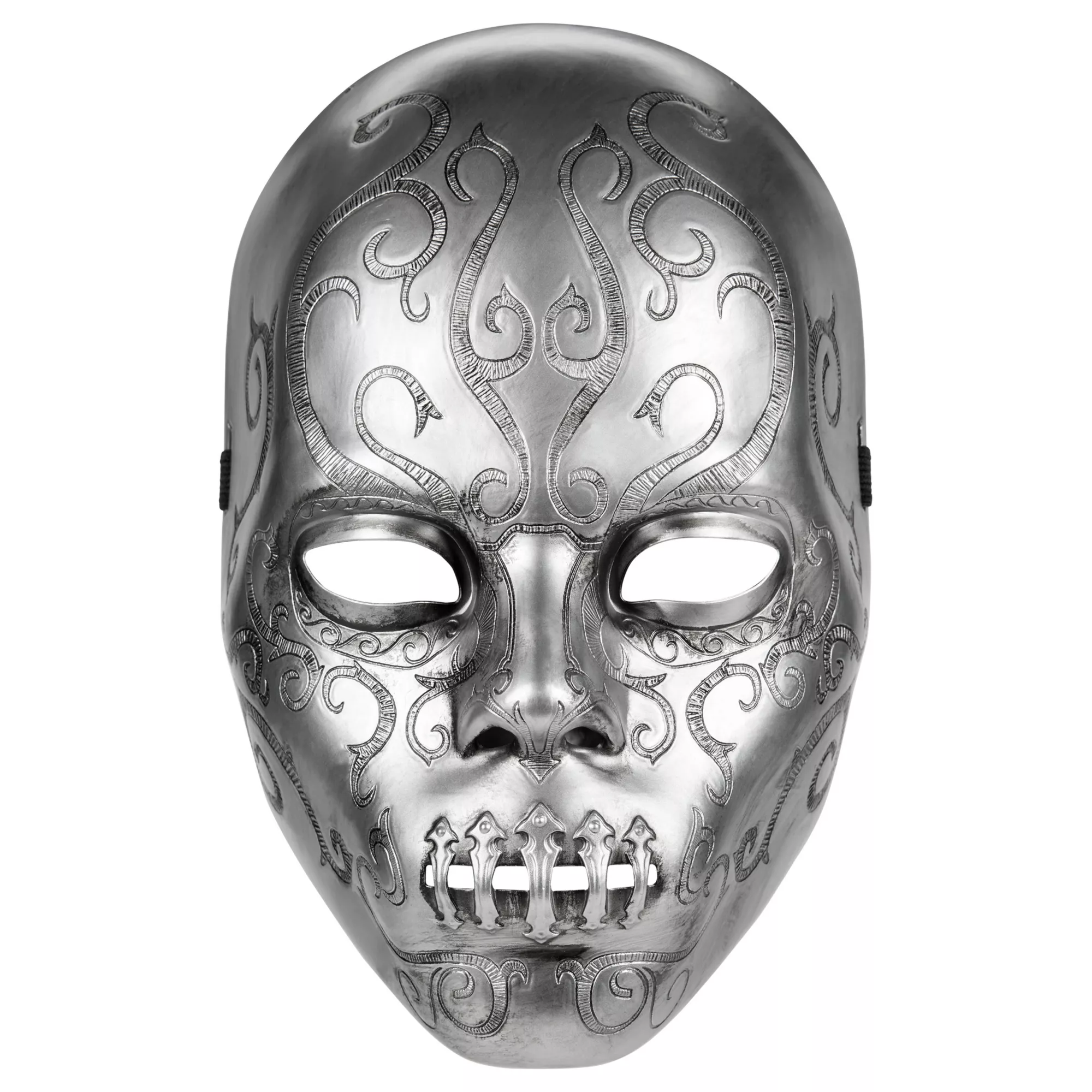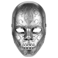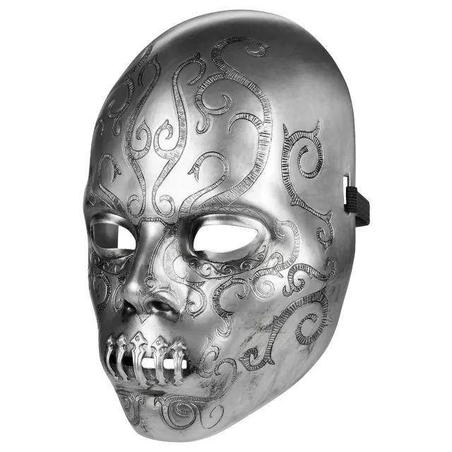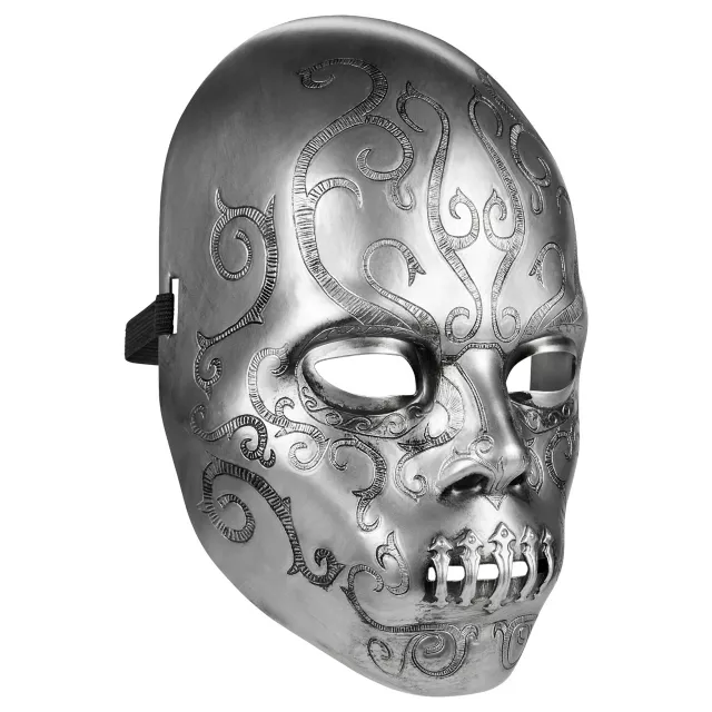 Unleash your inner chaos this Halloween with this officially licensed Bellatrix Lestrange Death Eater Half Mask. This stylish, sinister piece features an ornate design with a metallic finish, making it the perfect addition to any dark witch costume!