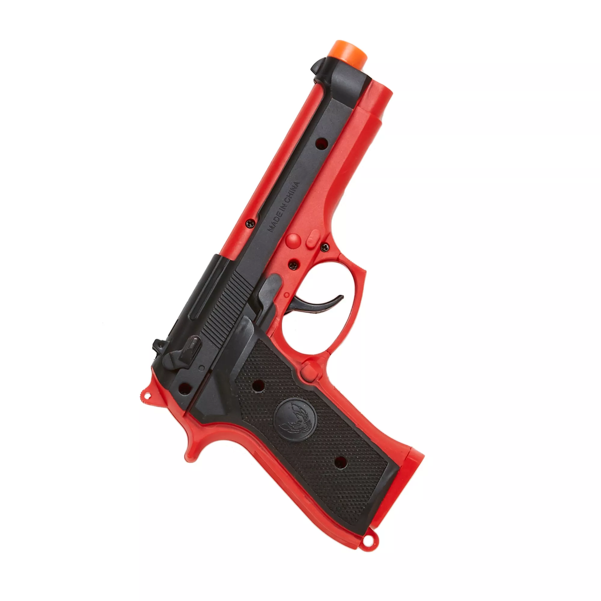 Accessorize your Halloween costume with this red and black toy gun. With electronic gun shot sounds, you'll have the most convincing costume at the party.