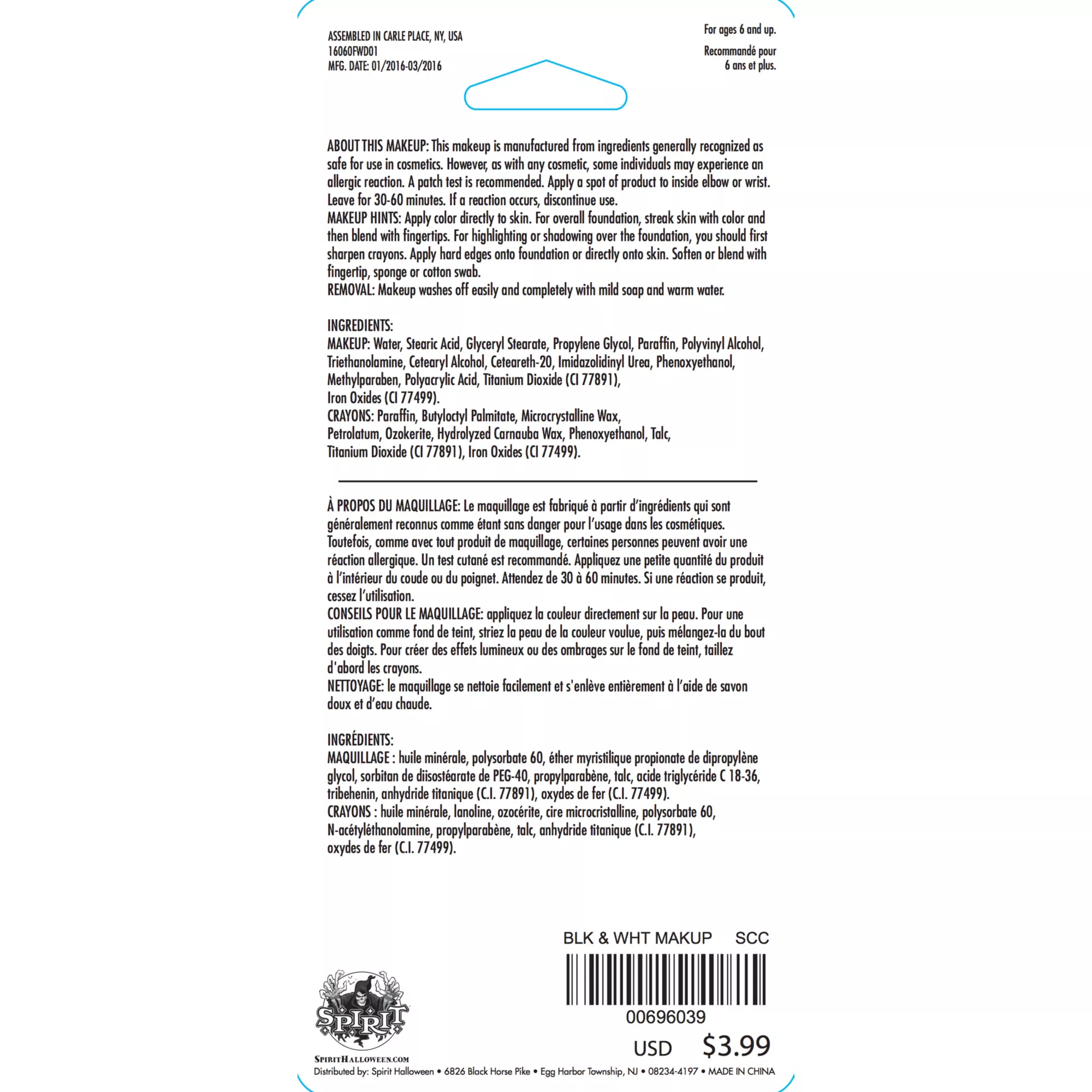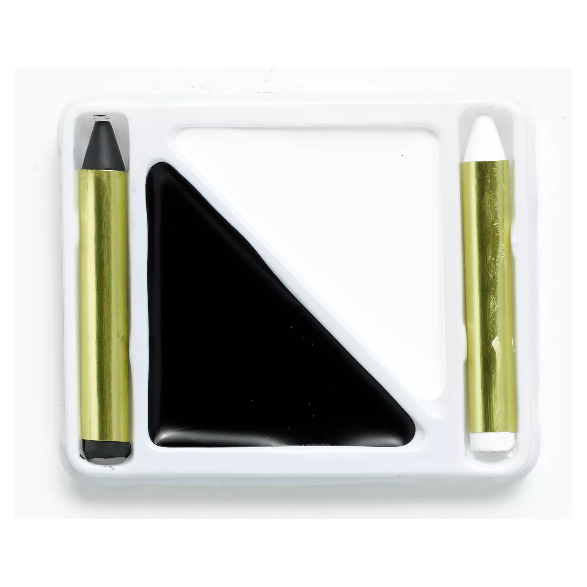 Create or complete a total transformation when you use this black and white makeup to alter or enhance your appearance.