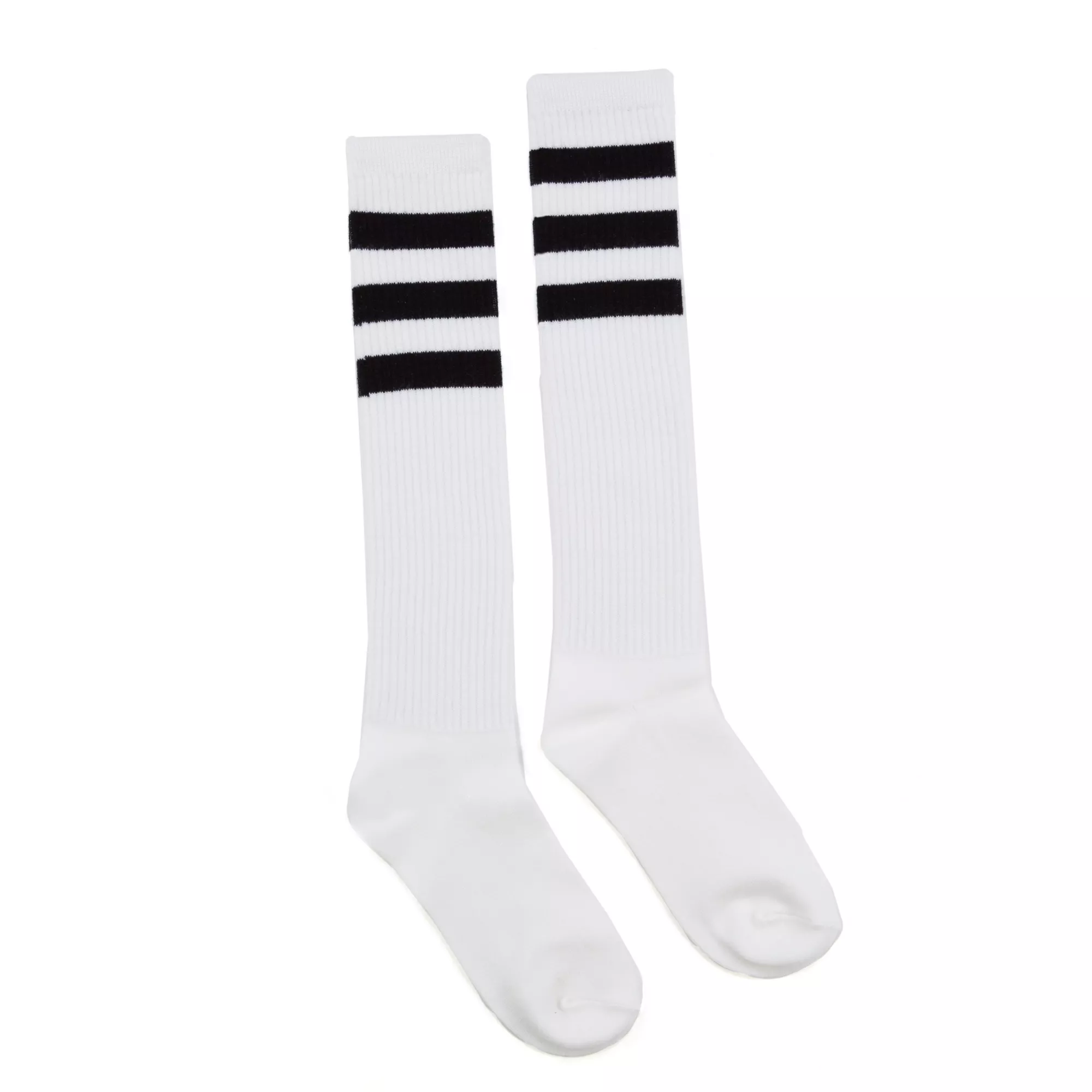 You'll call the shots wearing these Black and White Referee Socks. Be fair when you sport these black knee high socks with three thick white stripes.