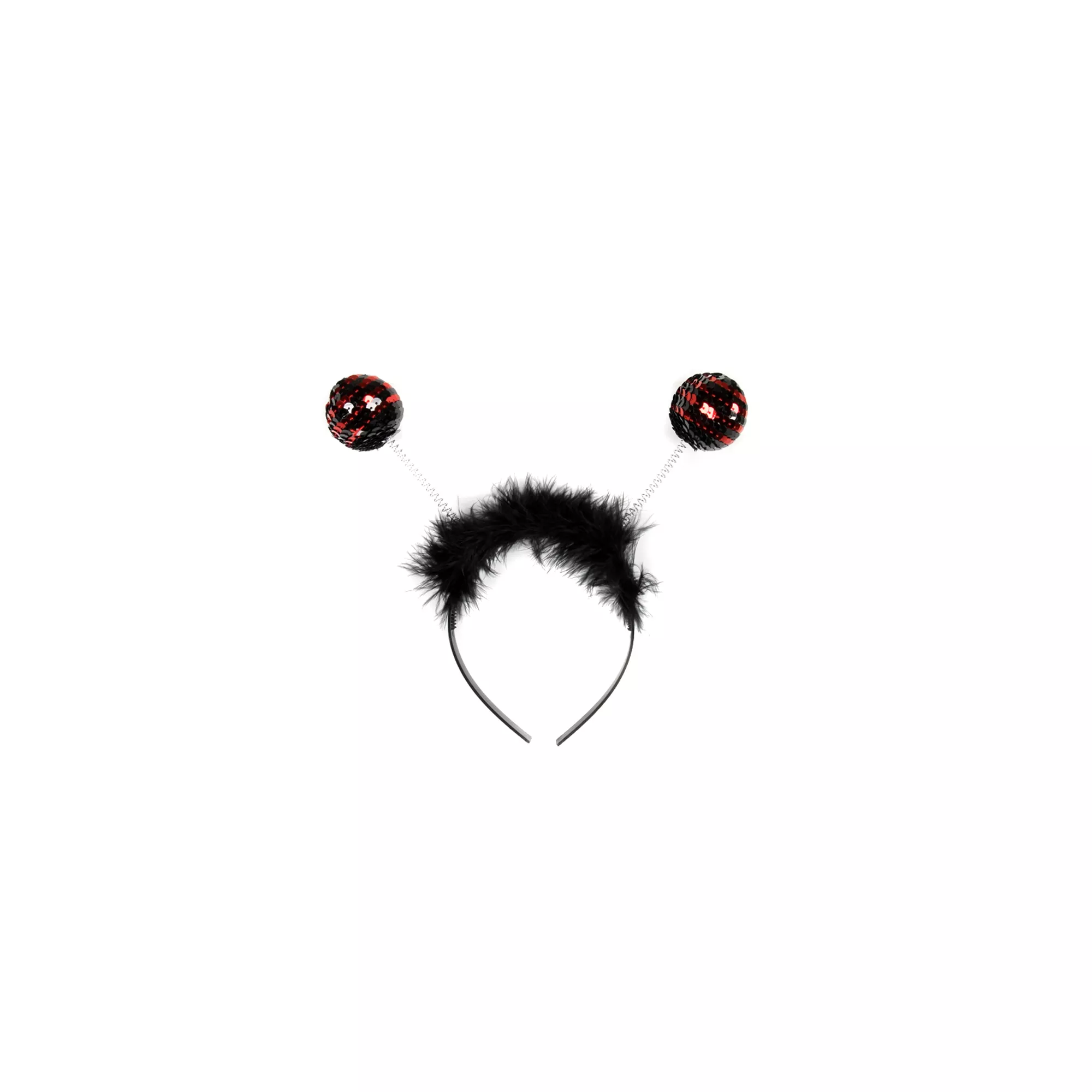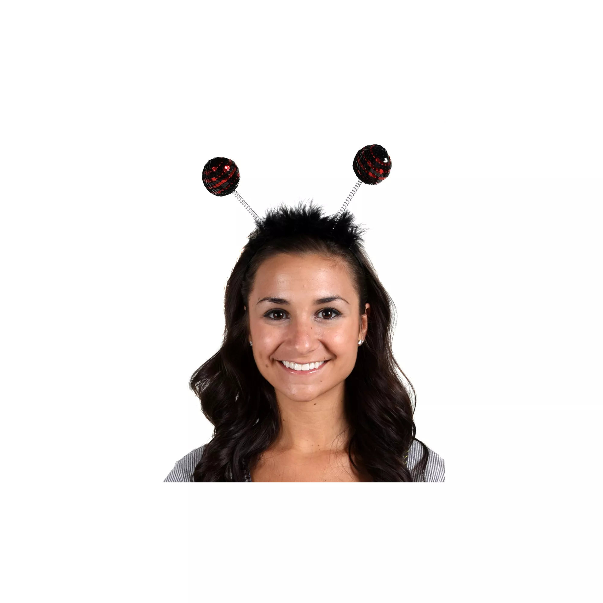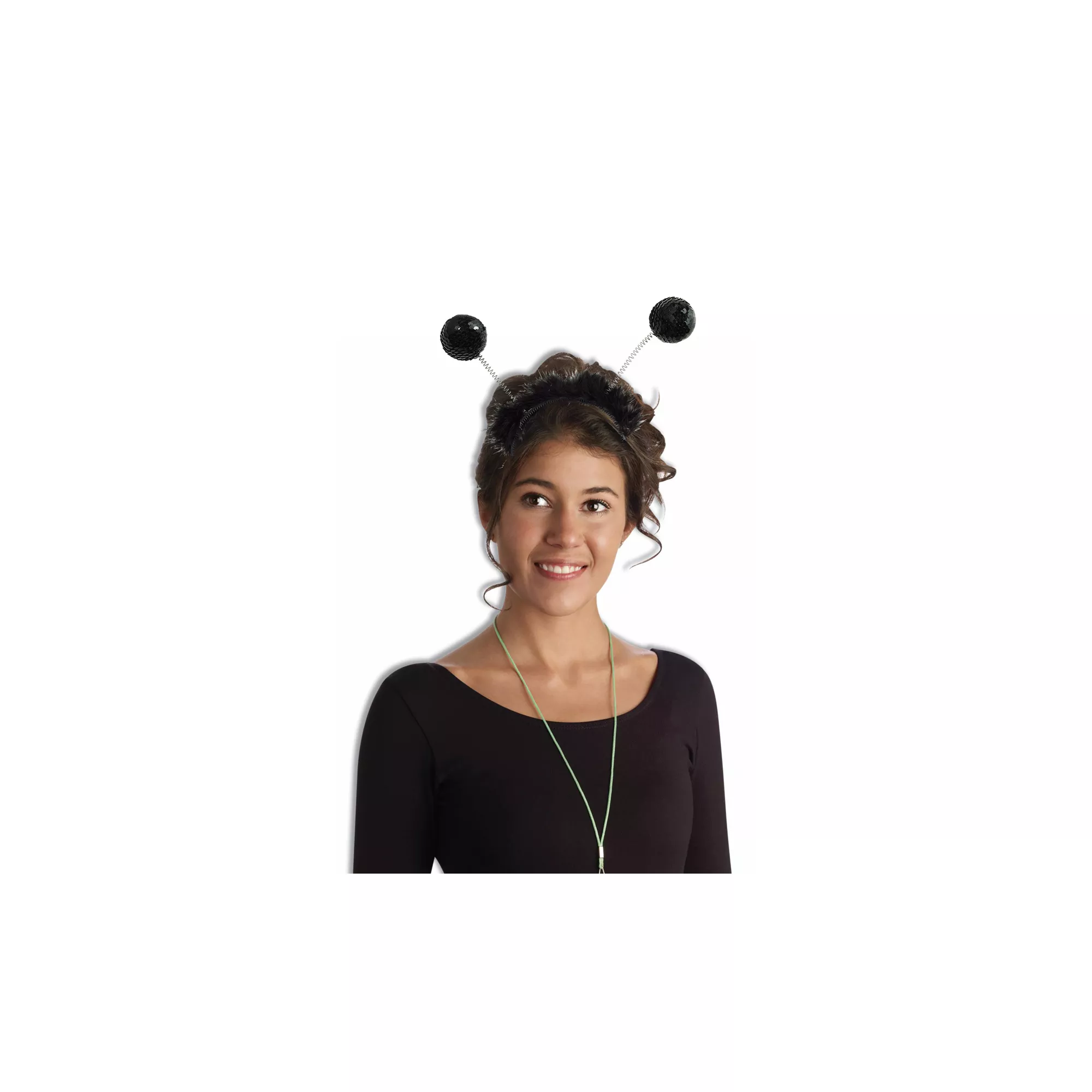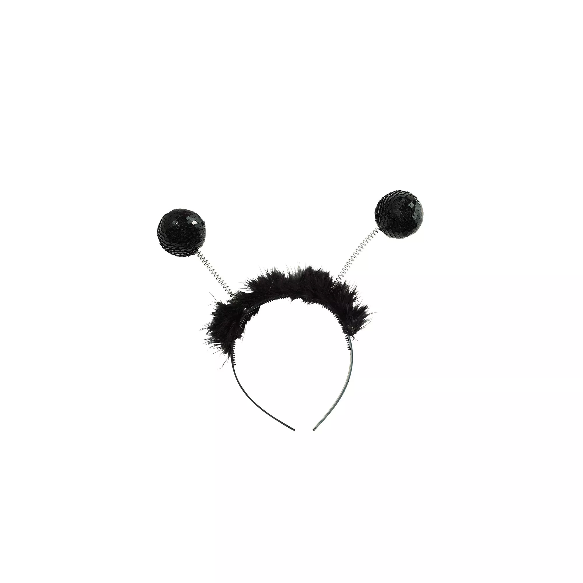 Nothing will bug you when you complete your costume with this black sequin Antenna Headband!