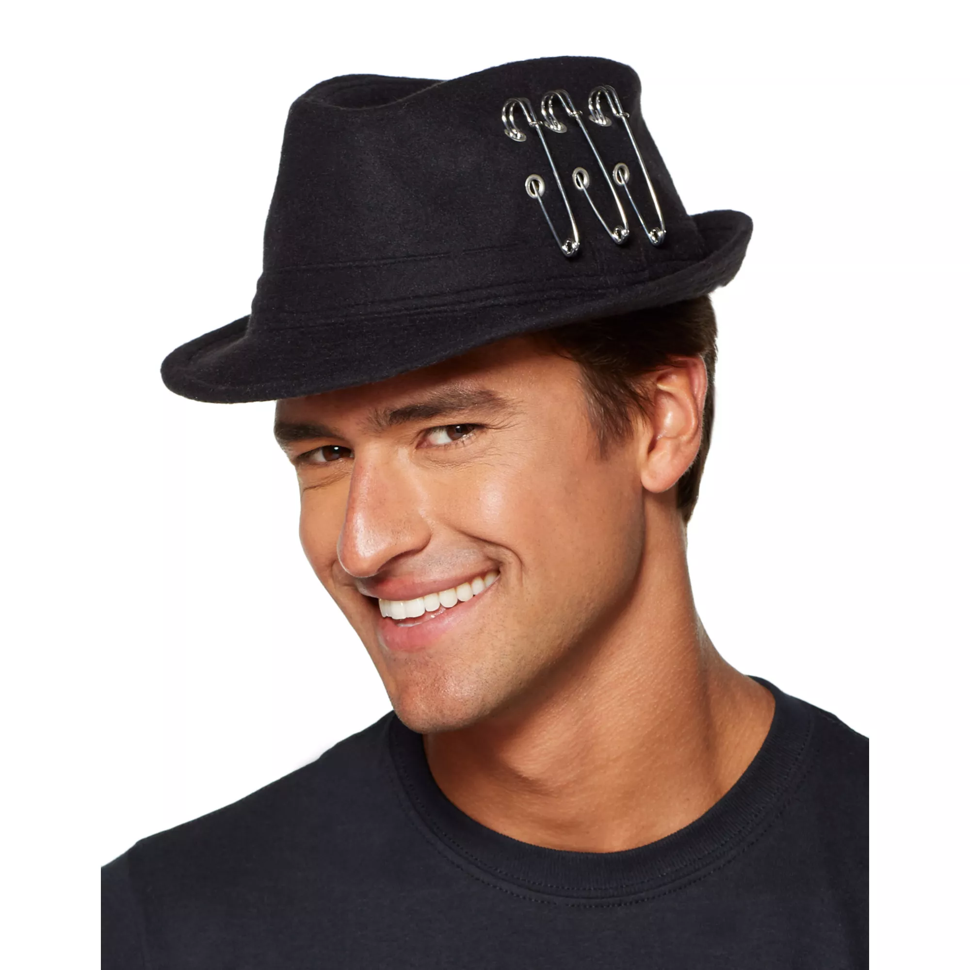 Topping of your 20's gangster style? Stepping out this Halloween as a pop icon? Whatever your costume, give it a polished look from head to toe with this pin fedora! The pinned sides ad a bit of edge to the all black hat.