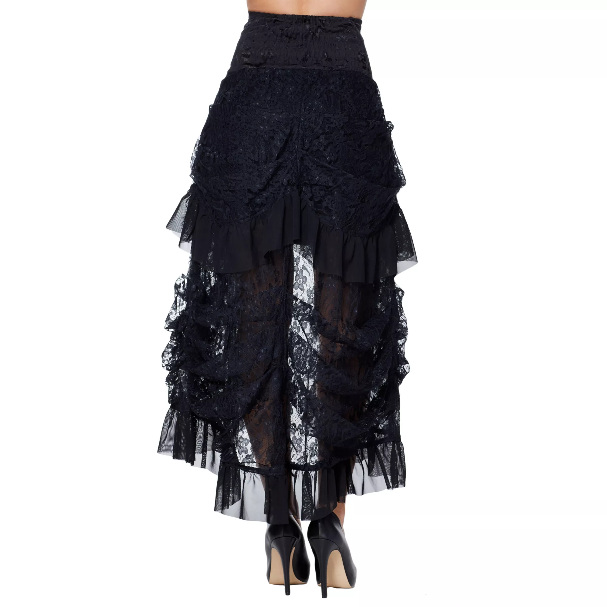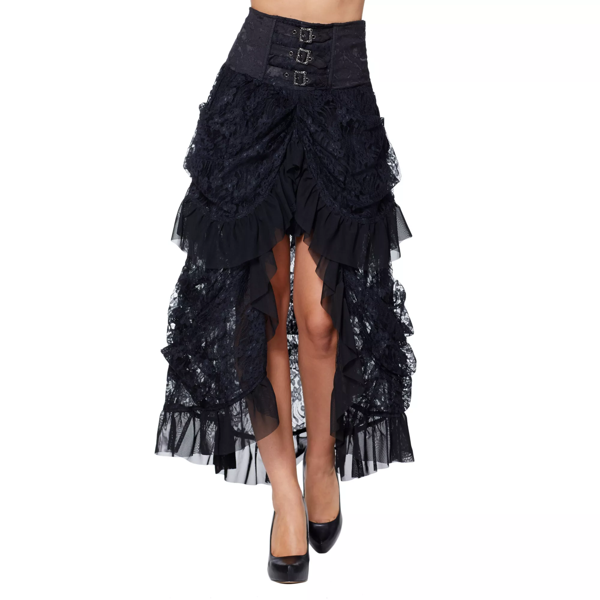 From steampunk style to a sinister vampire or even a wicked witch, this gothic lace skirt is the perfect accessory for accenting your Halloween look. Ruffled front and back details as well as draped black lace will make your costume creation unforgettable!