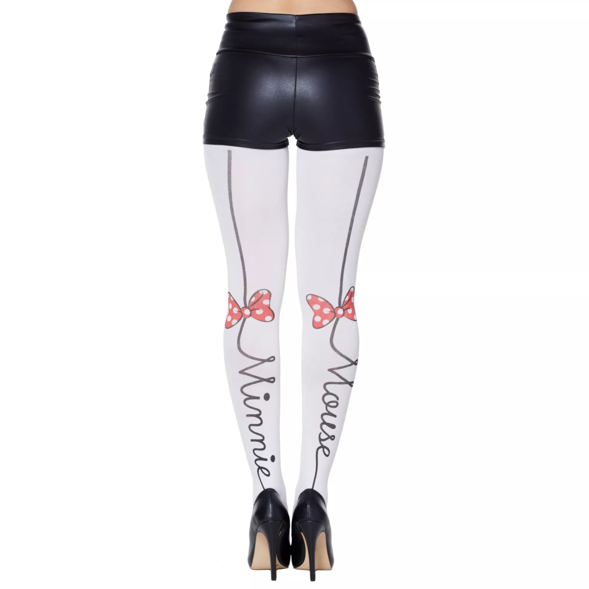 Complete your Minnie Mouse costume when you wear the officially licensed Disney Minnie Mouse Black Tights. This pair of black, white and red tights feature Minnie details, including a red and white polka dot bow.