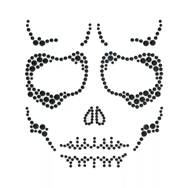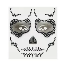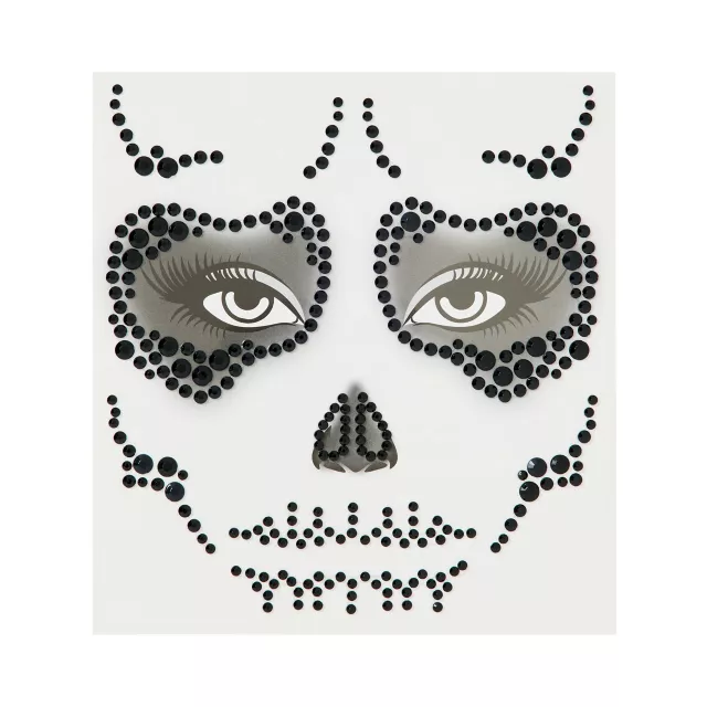 Searching for the perfect finishing touch to your skeleton costume? Go for a balanced blend of cute and creepy when you use this Black Skeleton Gem Face Decal. Easy to apply and remove, these gems will add a touch of eerie elegance to your makeup routine.