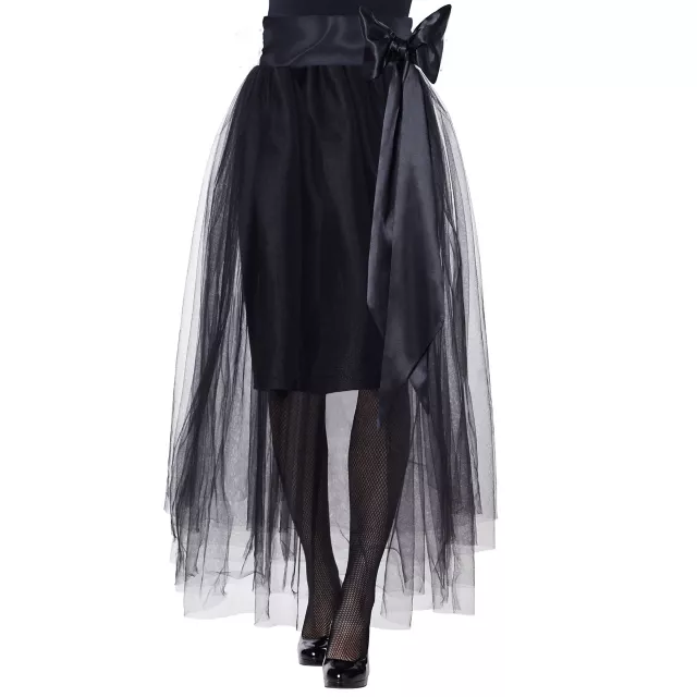 Add some shadowy style to your outfit on Halloween night with this black tulle skirt. Whether you’re a vexing vampire or a tantalizing temptress, this dark skirt, adorned with a long black bow, is the perfect addition to any mysterious costume!