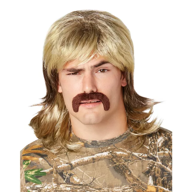 You'll transform yourself with this facial hair set that'll help complete your costume with its blond wig and brown mustache for the finishing touch.