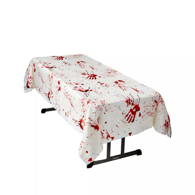 Set the tone for your Halloween party when you decorate the table with this awfully creepy Bloody Hand Prints Table Cover. The white table cover features blood-red hand prints and spatter.