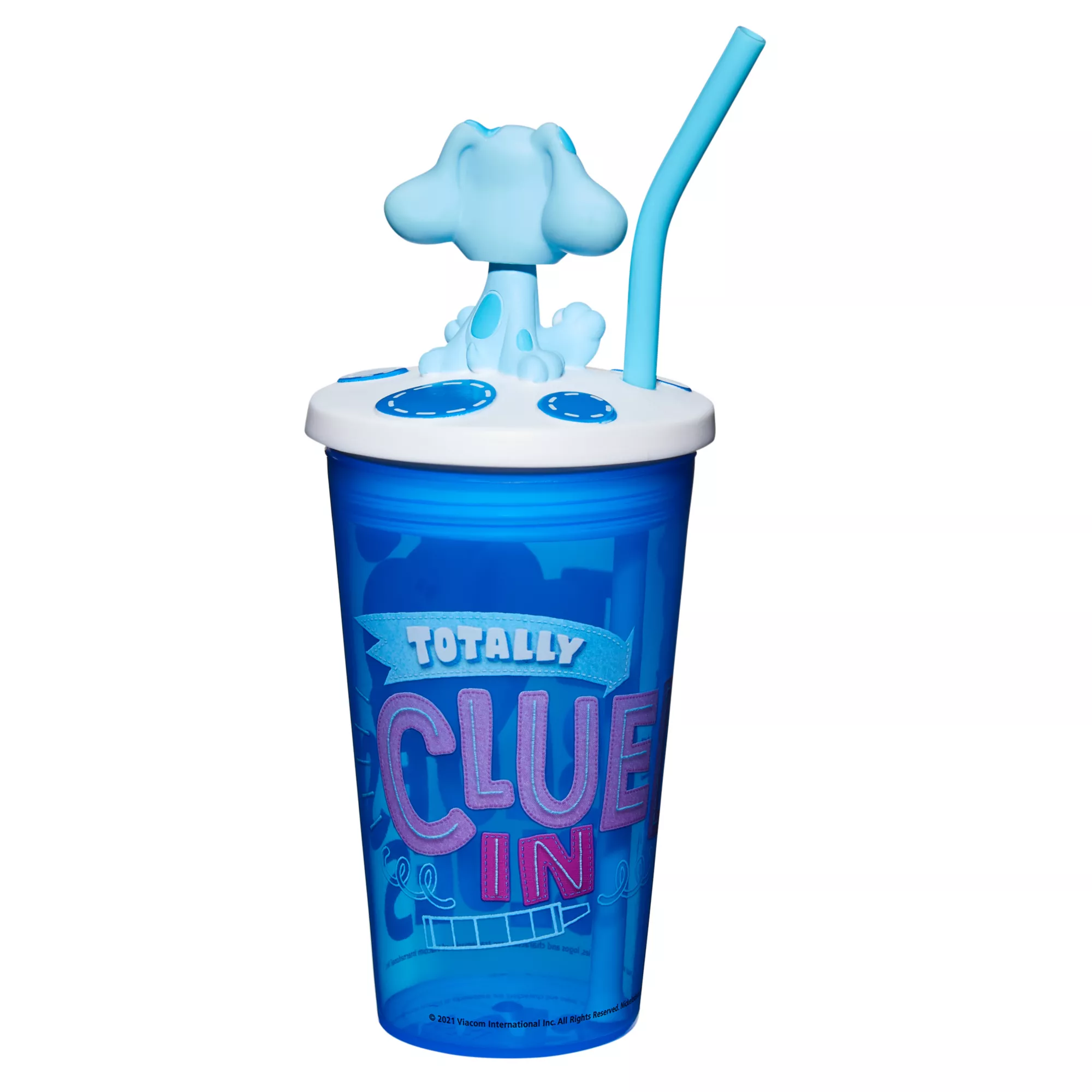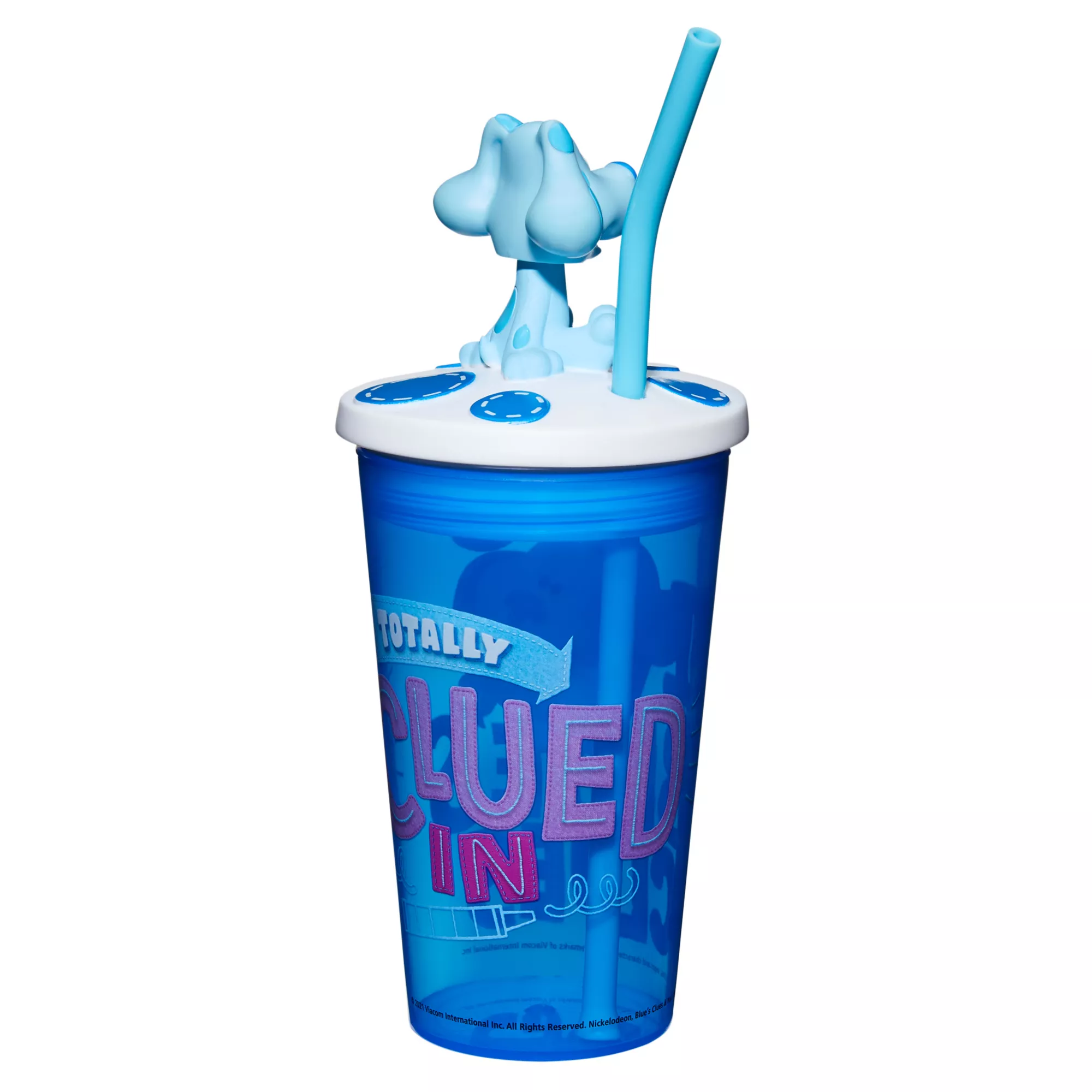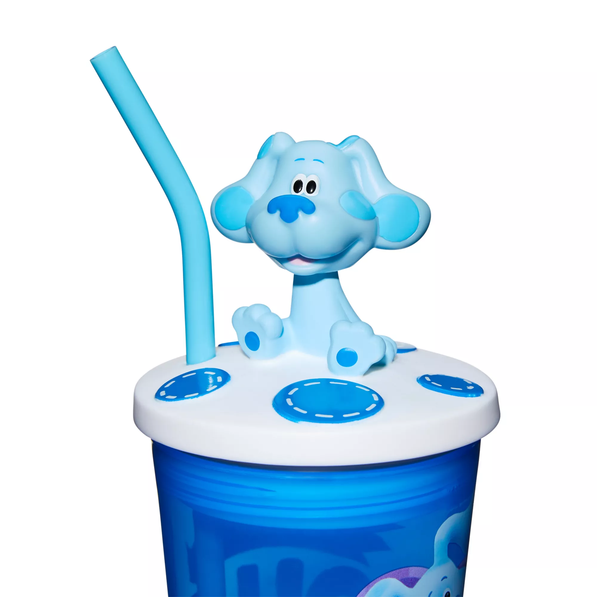 Stay hydrated while watching TV or any time with this fun Blue's Clues cup with straw! This molded cup features your favorite animated dog, Blue, on top, and will make every sip even more fun.