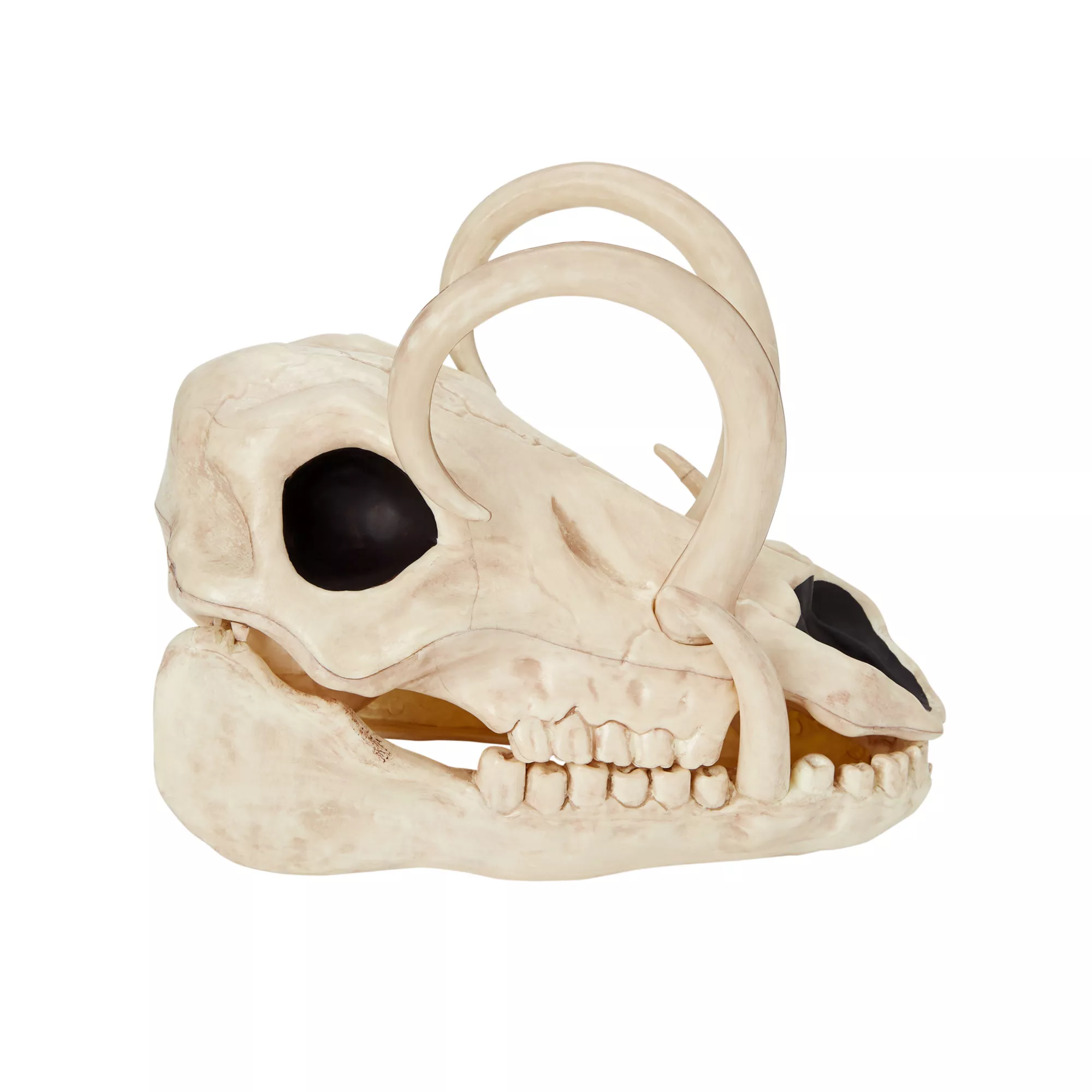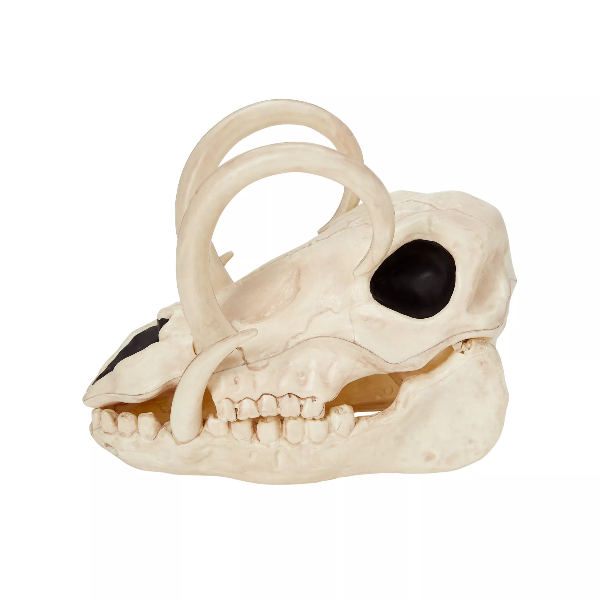 Add a touch of wildlife to your space with this boar skull decoration! This boar skull will inspire a morbid curiosity in your guests. With hollow eyes and menacing teeth, this boar skull will add a delightful darkness to your décor.