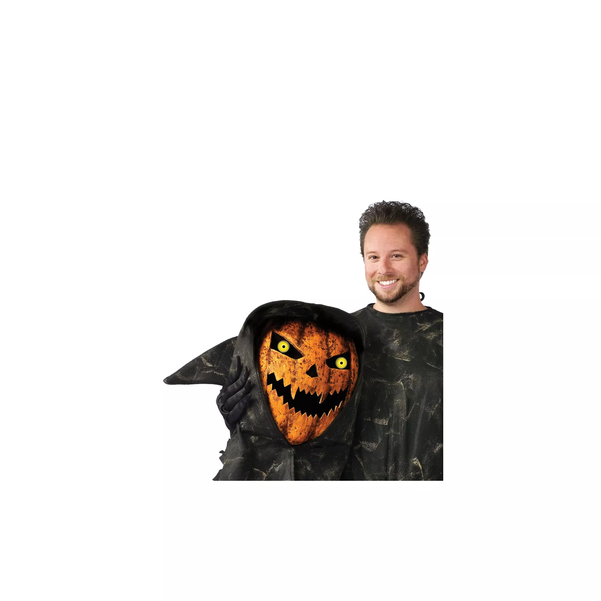 Beware the Great Pumpkin! This is no Charlie Brown Halloween special - this Bobble Head Jack-o-Lantern is for real and really scary! The adult Bobble Head Pumpkin costume has a super-size orange pumpkin head with an interior head support so you can party and terrify in comfort.