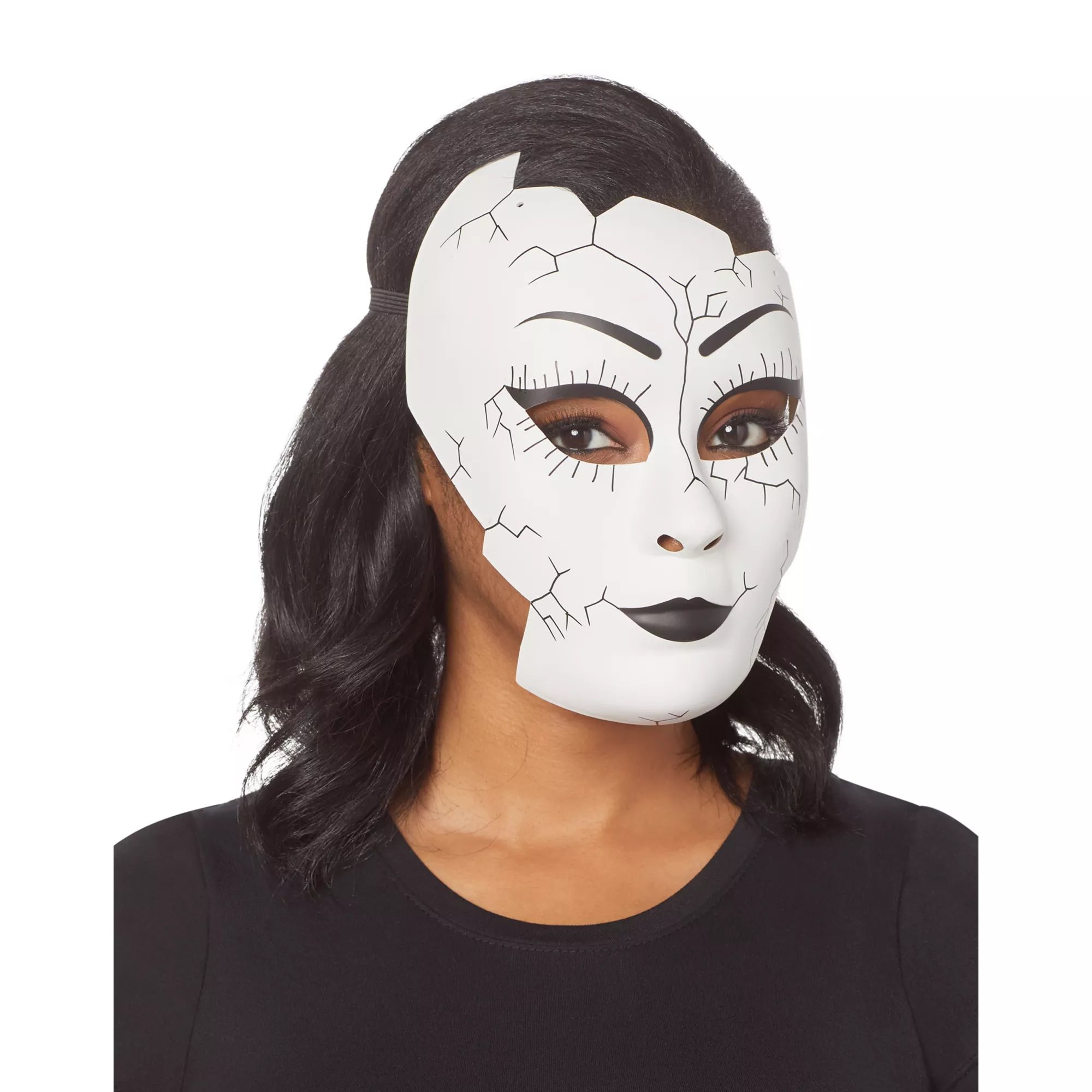 Playtime just got a whole lot creepier with this broken doll mask! Featuring black makeup and cracks all over, this mask is the perfect choice for any scary doll costume this Halloween.