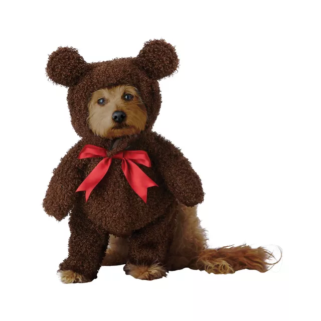 Turn your tiny pup into an adorable little teddy bear this Halloween by dressing them in this brown teddy bear pet costume. This costume comes with a headpiece and bodysuit to quickly and easily make your dog’s transformation come to life. This brown teddy bear features a red bow tie and looks like it is walking on its own two feet. This costume is a hilarious option for your pet and will let them join in on all the Halloween festivities.