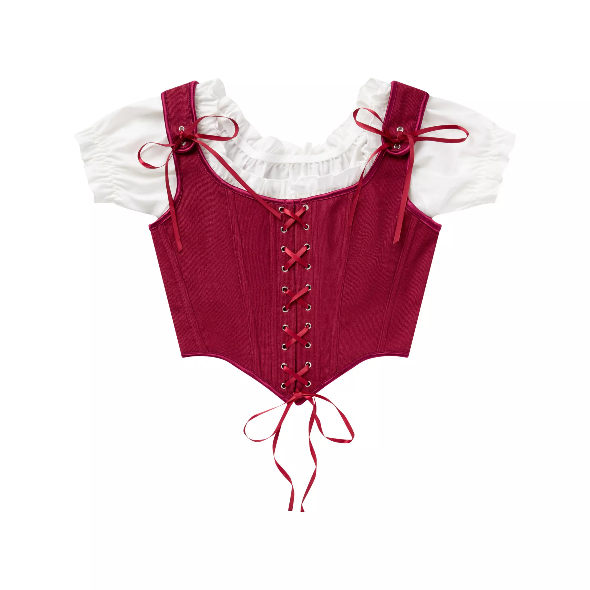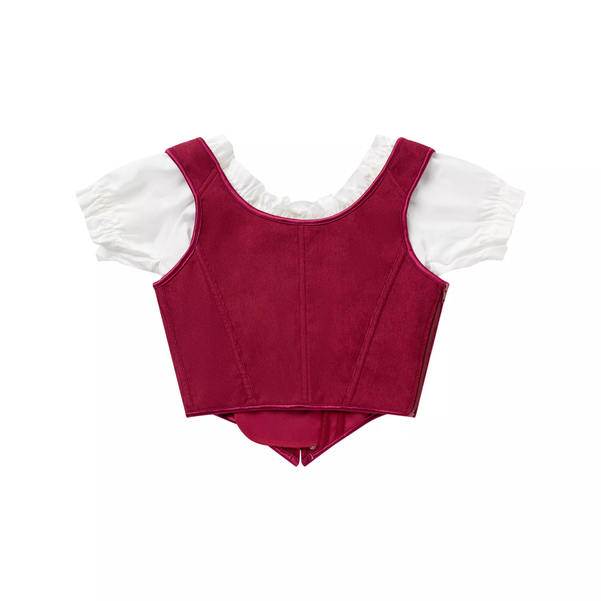 Ahoy, Lassie! Flaunt some swashbuckling style with this adorable Burgundy Pirate Corset Top. This corset top is fit for the bravest buccaneers and features a lace-up closure and a two-fer burgundy corset with a matching white puff sleeve top.