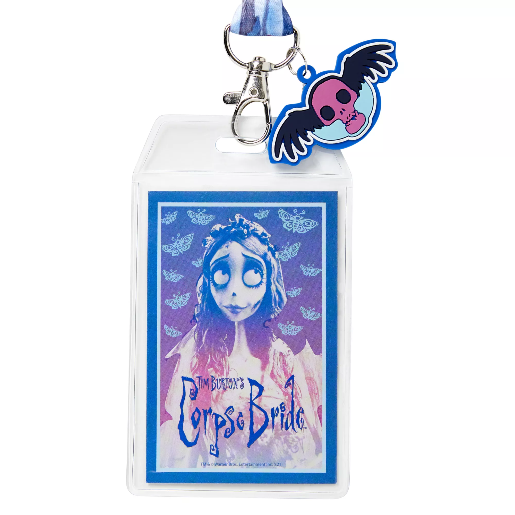 Carry your keys and ID easily in this official Butterfly Corpse Bride Lanyard! Perfect for any fan of this popular movie, this lanyard features images of Emily along the strap and a butterfly charm. It's perfect for Halloween or anywhere else when you want convenience and movie style.