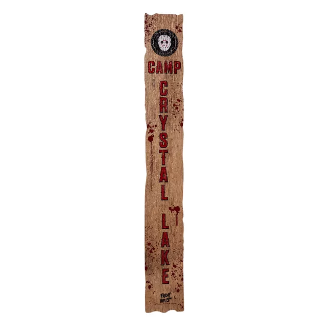 There's a reason Camp Crystal Lake's nickname is Camp Blood... Celebrate your favorite horror franchise and prepare to scare your guests when you hang this officially licensed Friday the 13th Leaner Sign in your home.