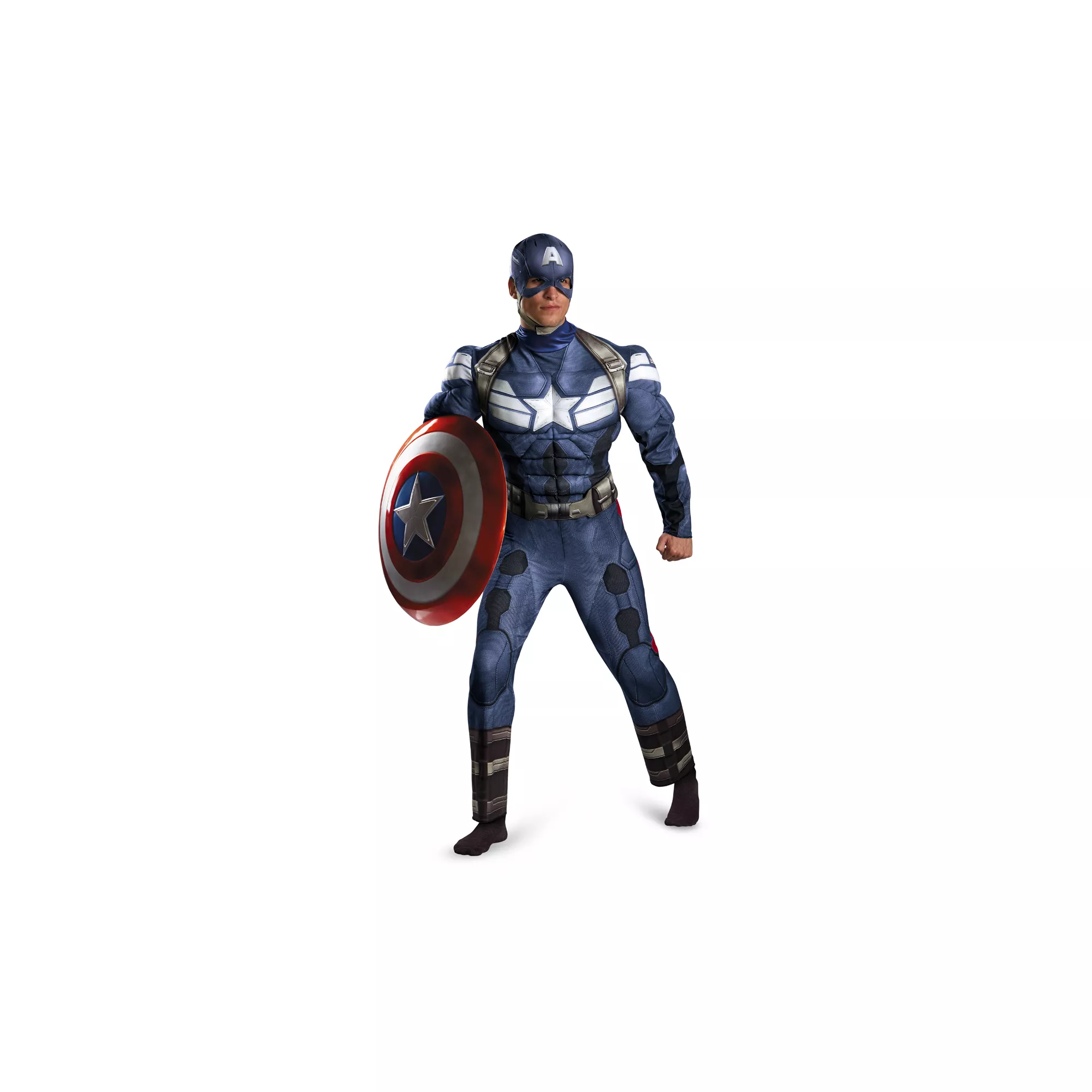 Team up with Falcon this Halloween and keep the neighborhood safe when you wear the officially licensed Captain America Muscle Jumpsuit Adult Men's Costume. This blue and white jumpsuit features muscle torso and arms along with authentic details and a character mask.