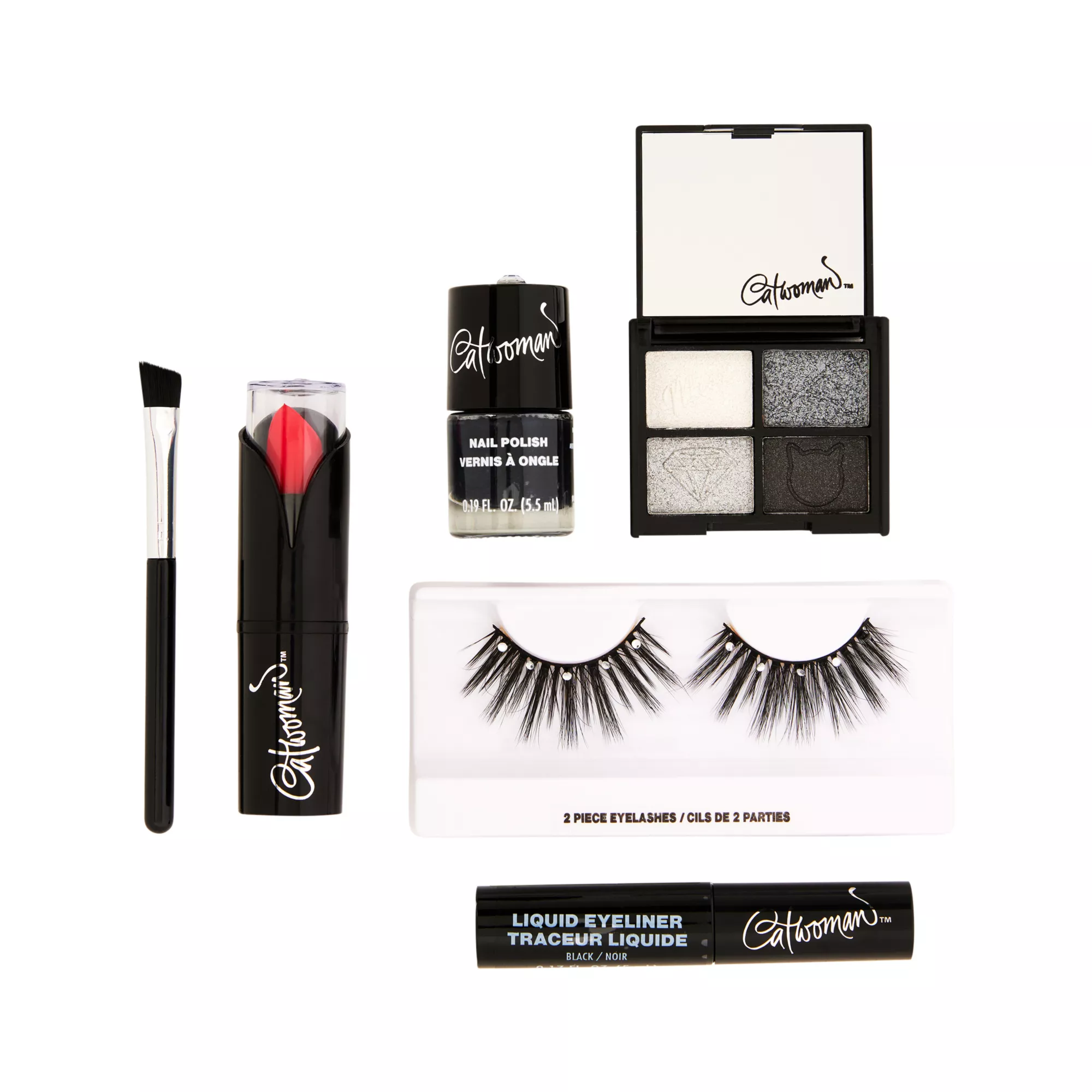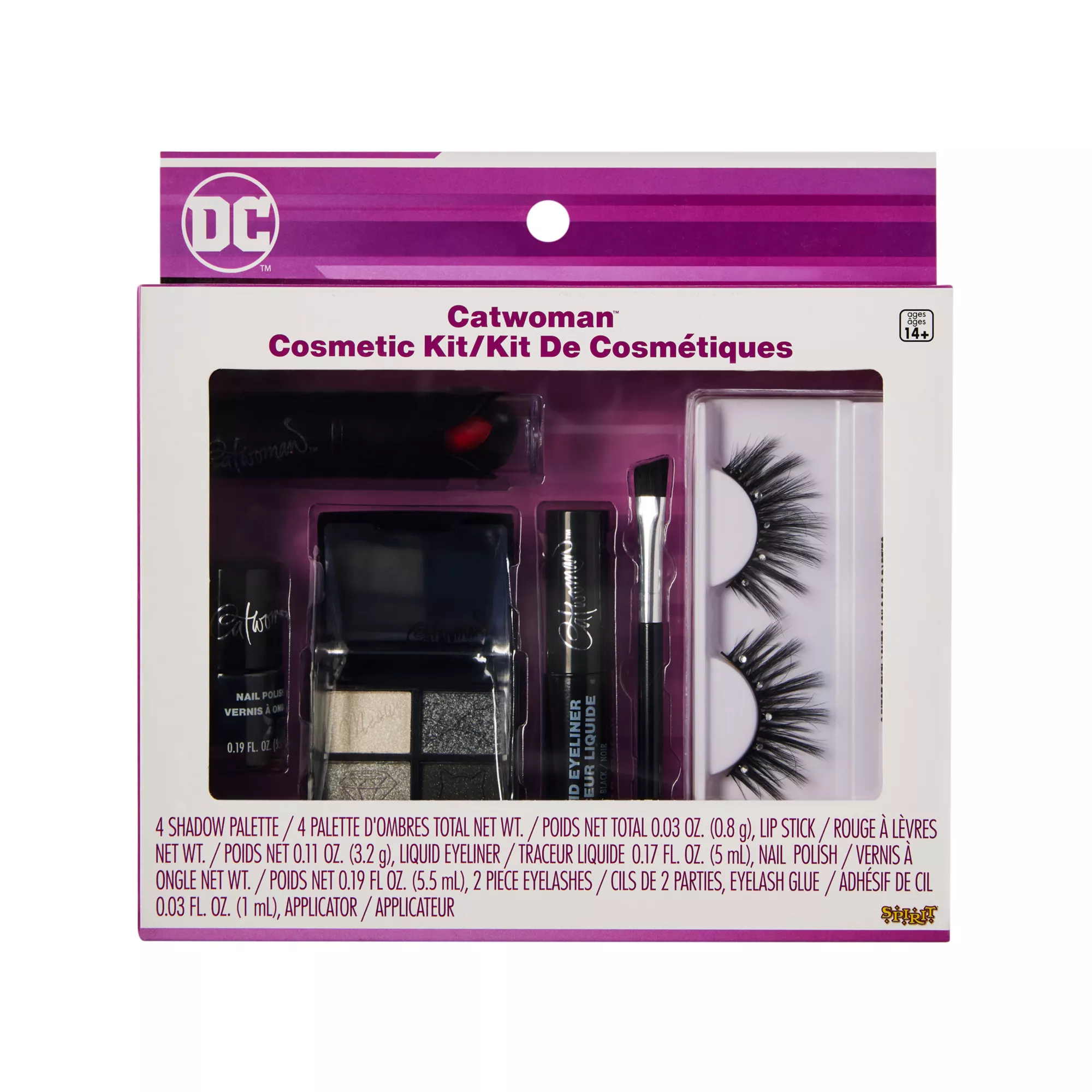 Becoming your favorite DC Villain is easier than ever with this officially licensed Catwoman Makeup Kit. This awesome set includes a shadow palette, lip stick, liquid eyeliner, nail polish, a makeup brush, and a pair of fake eyelashes, providing everything you need to nail the look.
