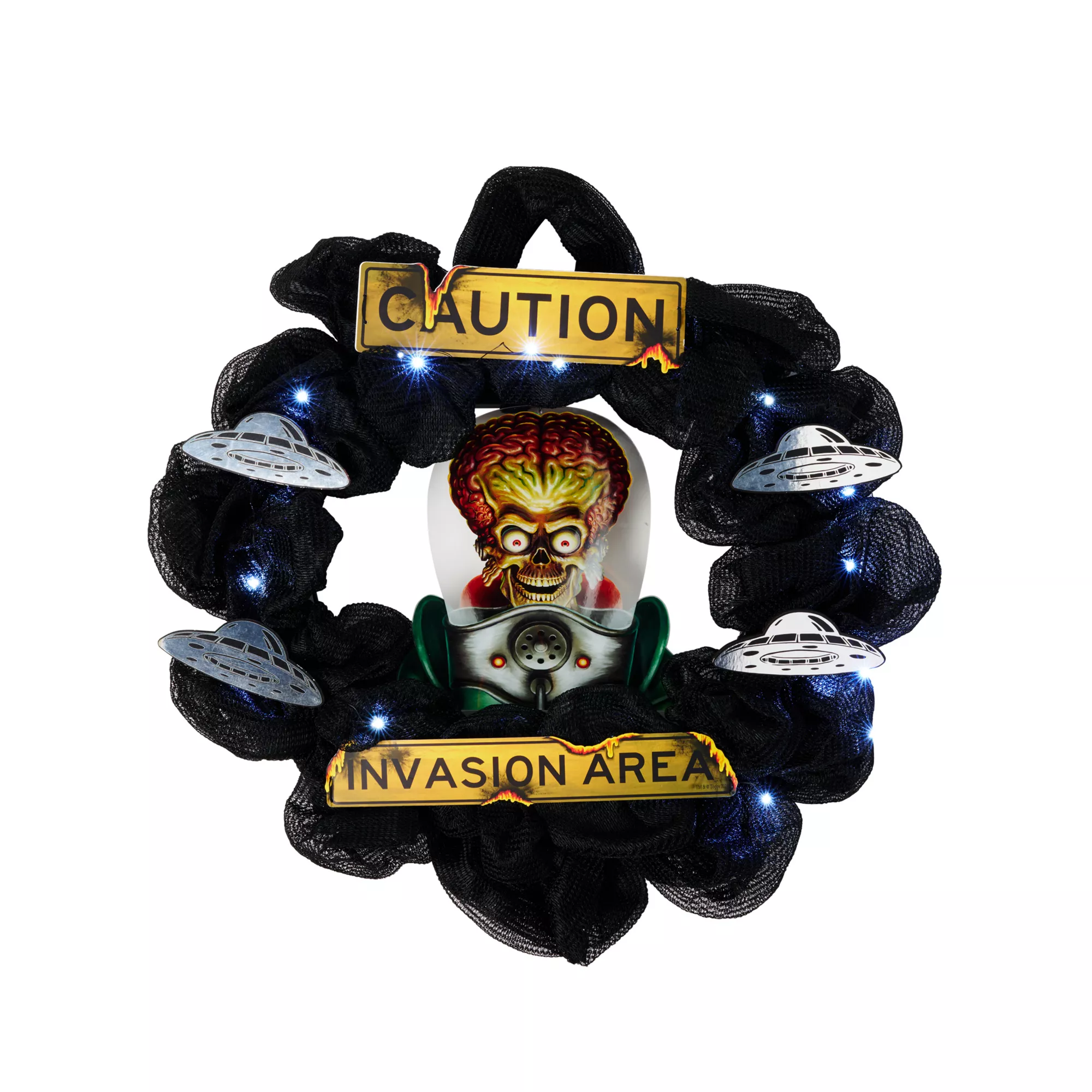 Caution Invasion Area Light-Up Wreath - Mars Attacks