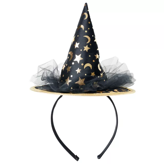 Complete your next witch costume with some celestial style when you add this Celestial Mini Witch Hat Headband to your look. This headband is an easy to wear accessory that's sure to take any witch costume you wear this Halloween to the next level!