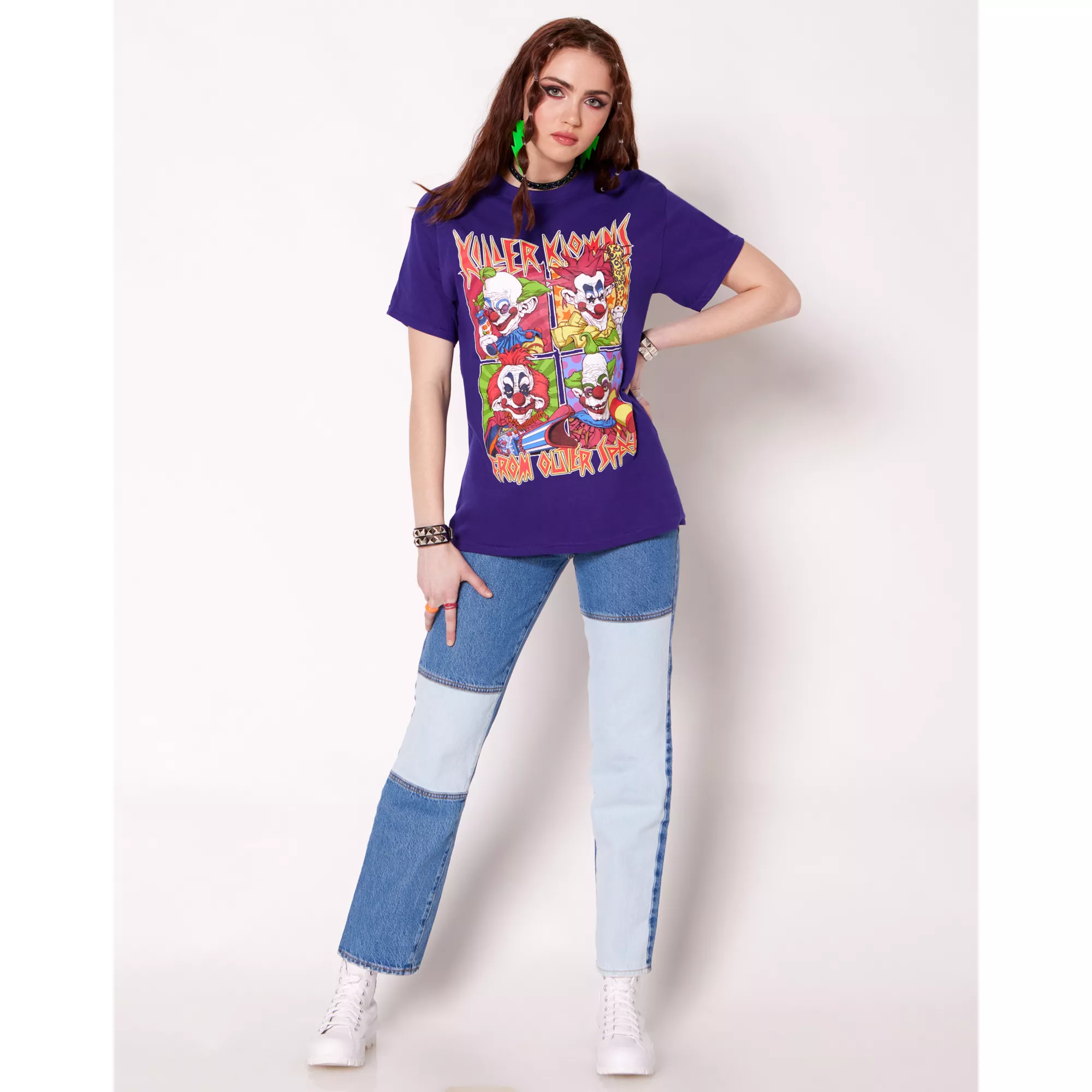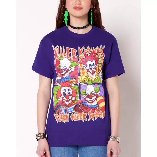 Can't decide which Killer Klown is your favorite? With this epic tee, you don't have to. This officially licensed Killer Klowns from Outer Space T Shirt features an image of Jumbo, Shorty, Rudy and Spikey, making it perfect for any fan of the film!