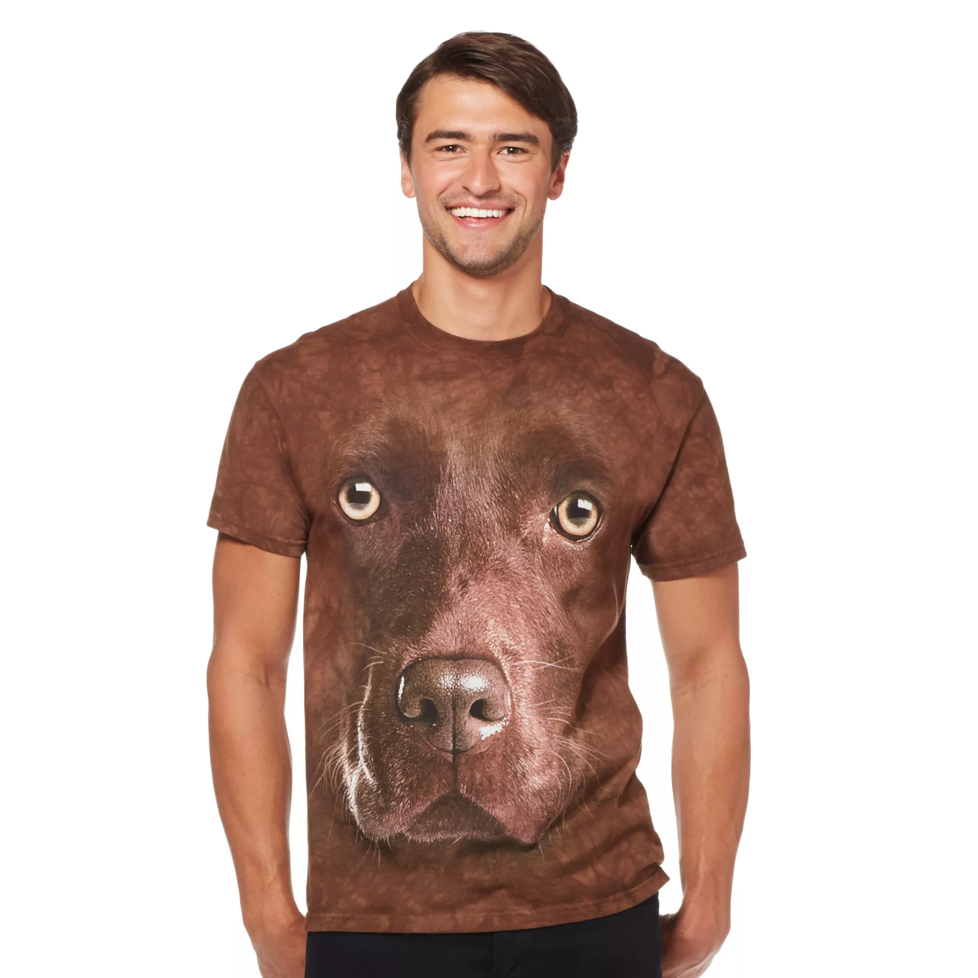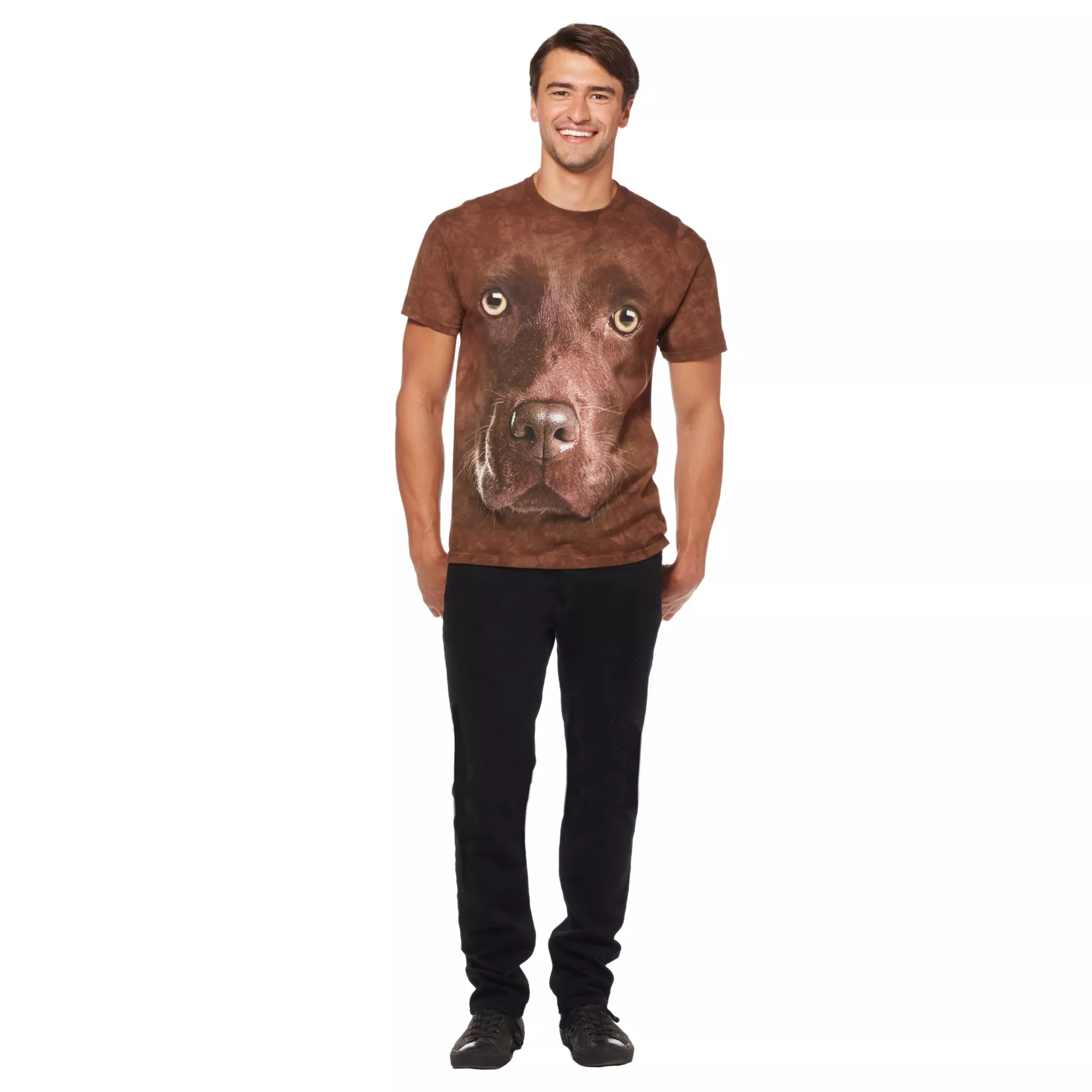You'll go barking mad for this Chocolate Lab face shirt! The brown tie dye design features an adorable dog's face! Whether you're a dog lover or looking for that easy Halloween look, this Chocolate Lab shirt is paw-sitively perfect!