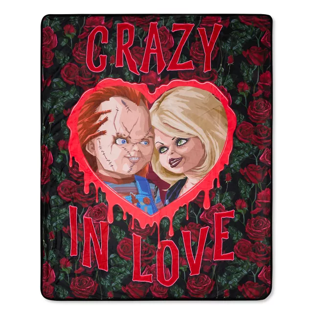 Celebrate film's most killer romance with this officially licensed Chucky and Tiffany Crazy in Love Fleece Blanket! This cozy, exclusive blanket's stylish floral design and romantic Chucky and Tiffany heart decal makes it the perfect fleece for even the most die-hard Chucky fans.