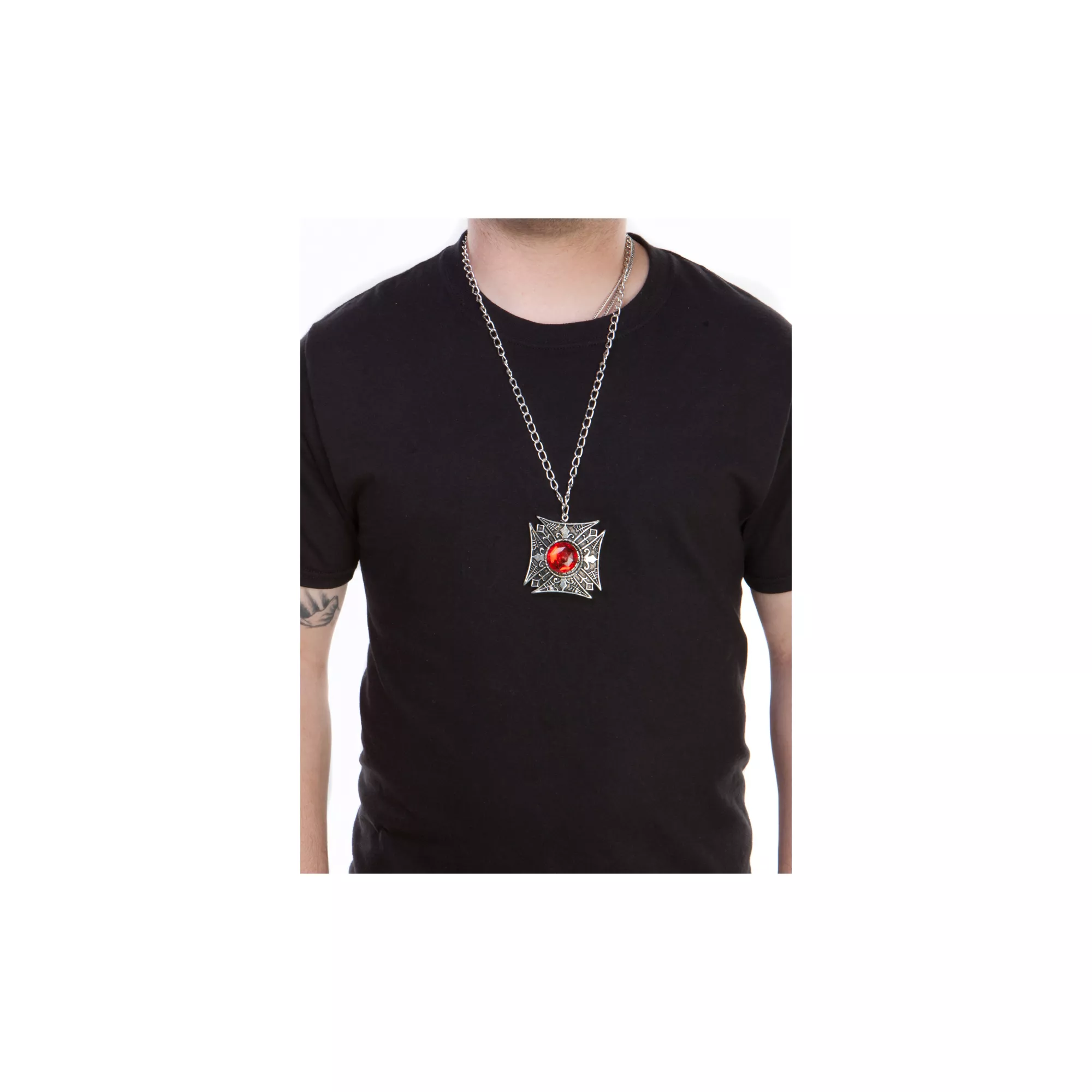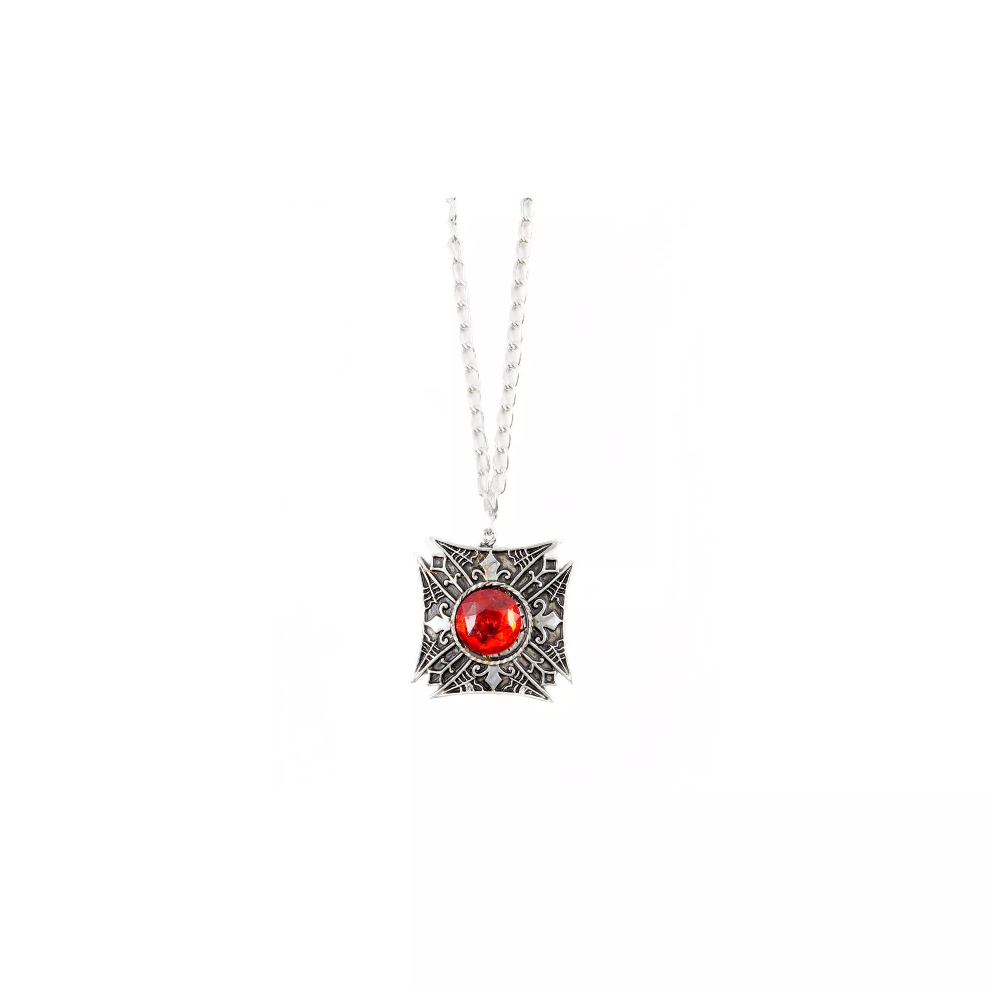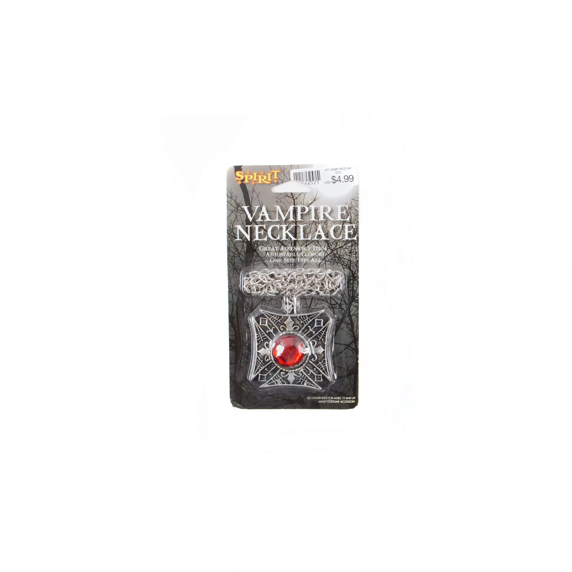 The devil is in the details. Add the finishing touch of authenticity to a vampire, witch, goblin, ghoul or ghost costume with this Gothic style Vampire necklace set with a blood-red faux gemstone.