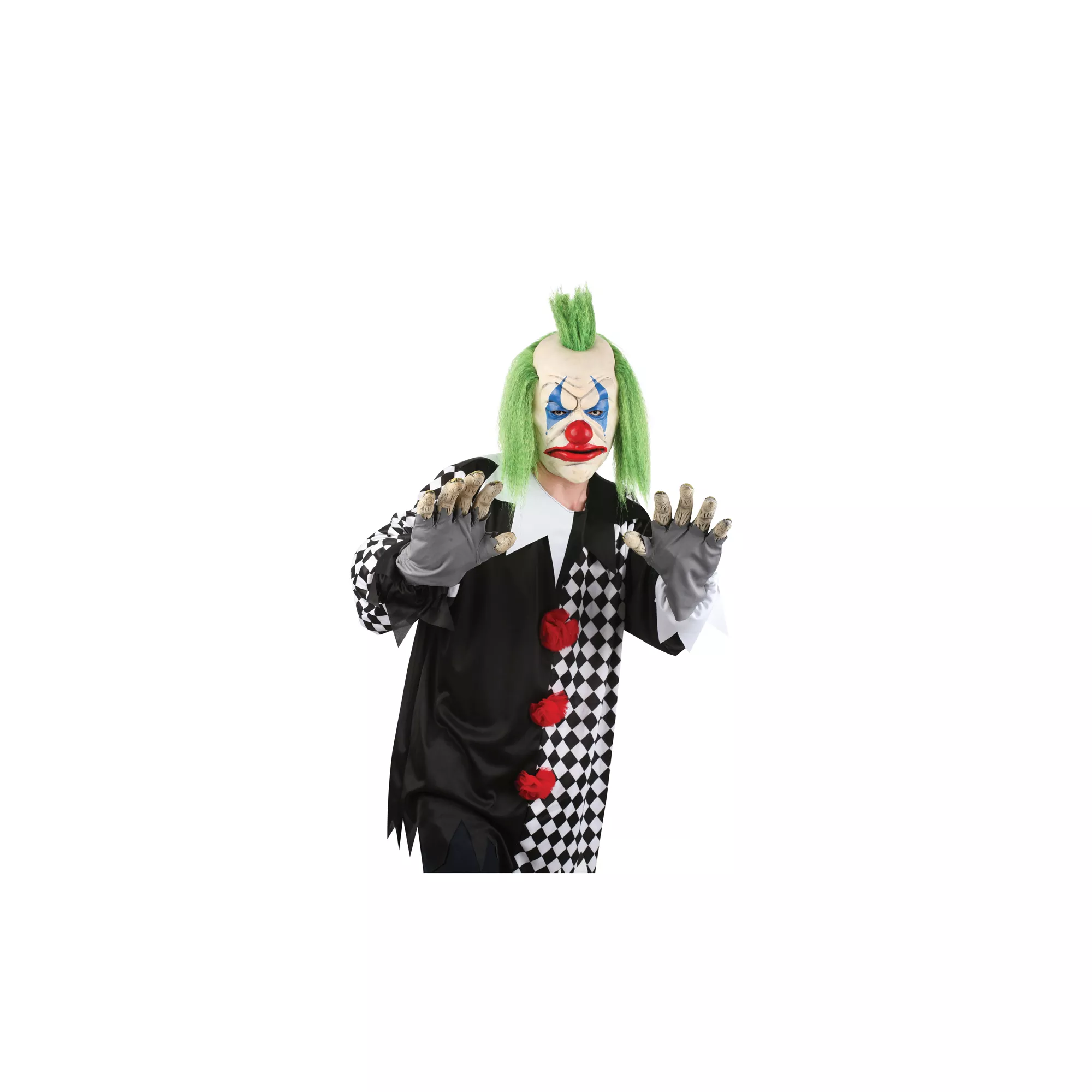 Will he make you laugh or cry - you decide when you create your own costume with this green haired Clown mask and matching hobo hands gloves - all you need to add is the creepy, crazy or cockamamie clown antics.