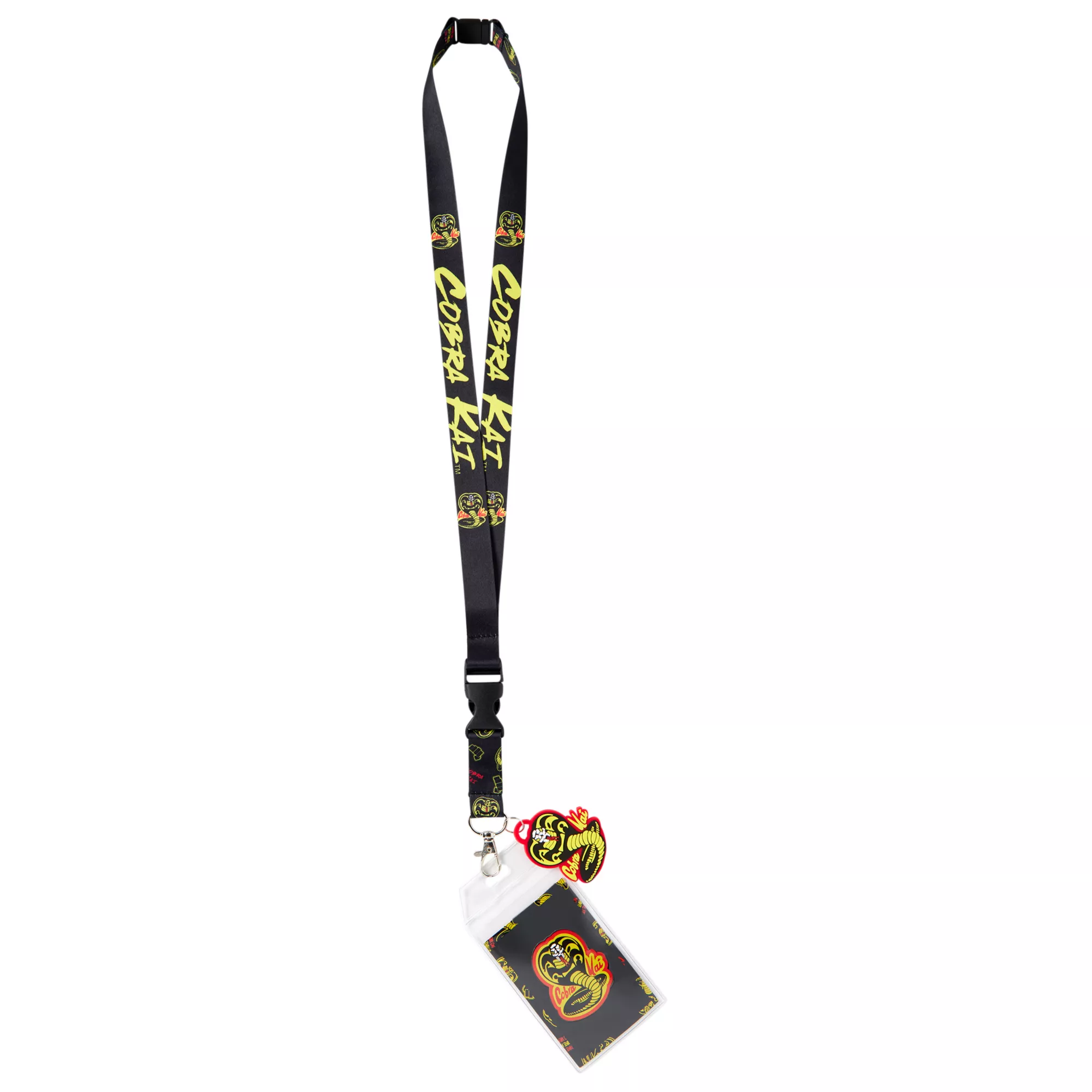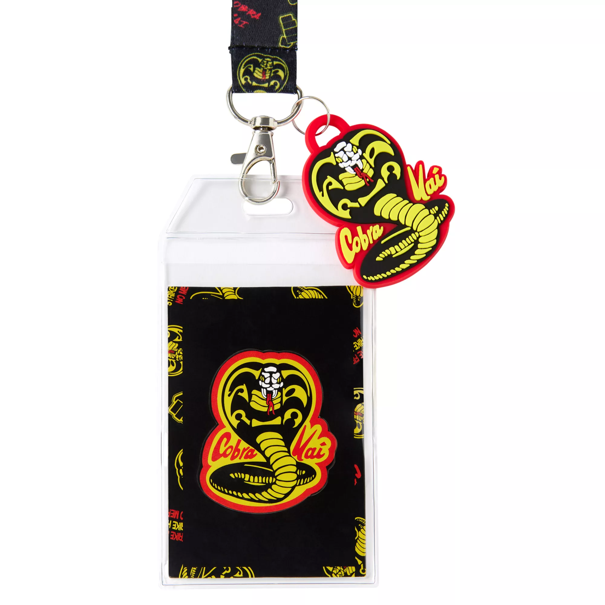 Show off your fandom with this fun Cobra Kai lanyard! Featuring Cobra Kai on the lanyard, strap and charm, this is a totally convenient way for any anime fan to carry their keys and ID.