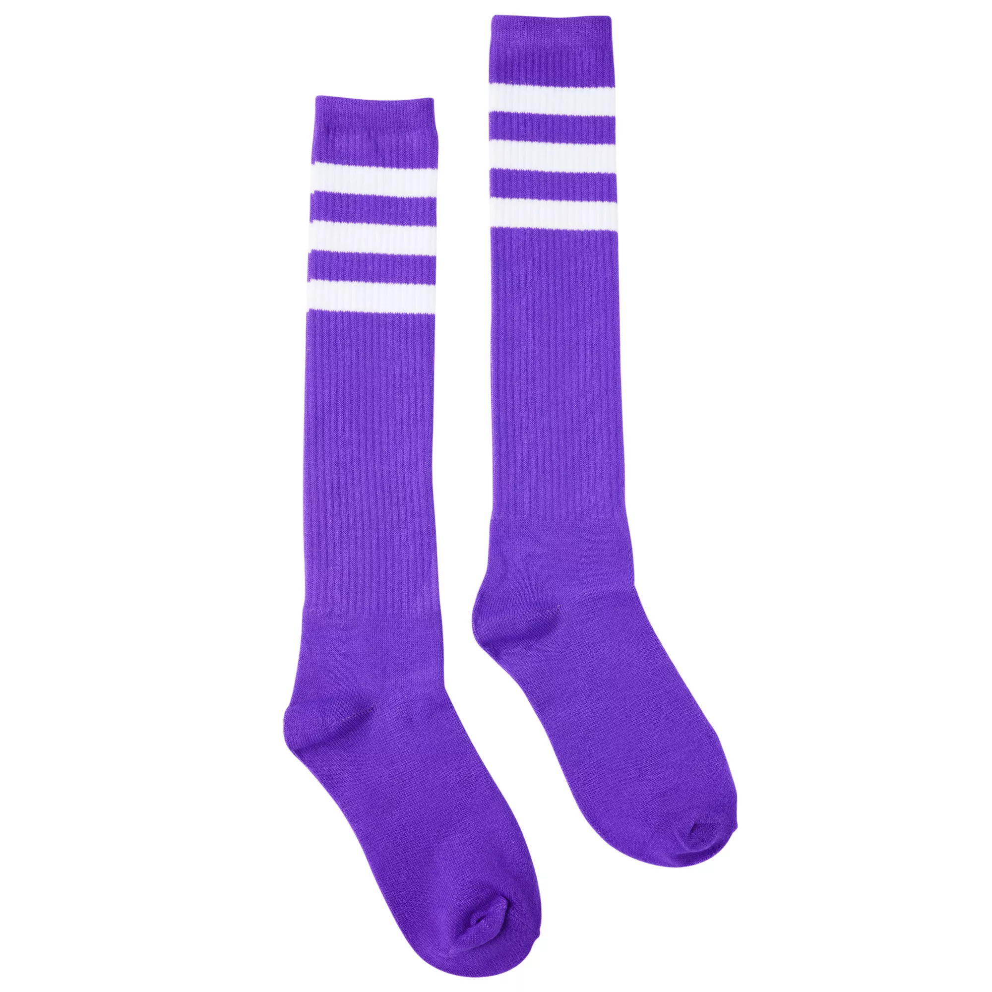 Ramp up your Halloween look with these colored striped knee high socks. Available in multiple colors, these socks will make the perfect addition to your costume!