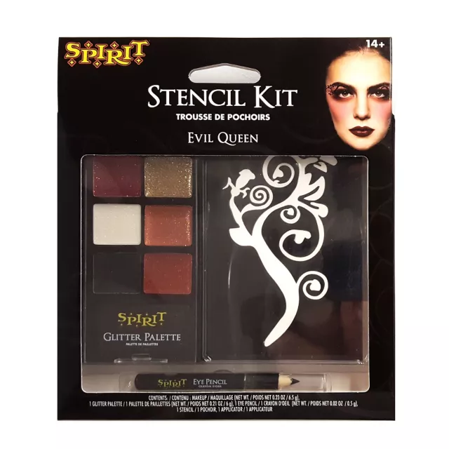 Show off your devilish artistry with the Devilish Queen Crawl the Line Kit. This glitter palette allows you to do makeup for a wide variety of costumes, from princesses to evil queens.The flower stencil adds an elaborate touch to an array of costumes.