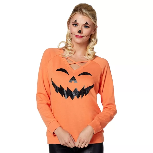 Give everyone a spook in style when you wear this criss cross pumpkin sweater! It's comfortable and cozy and will have you in the Halloween spirit instantly!