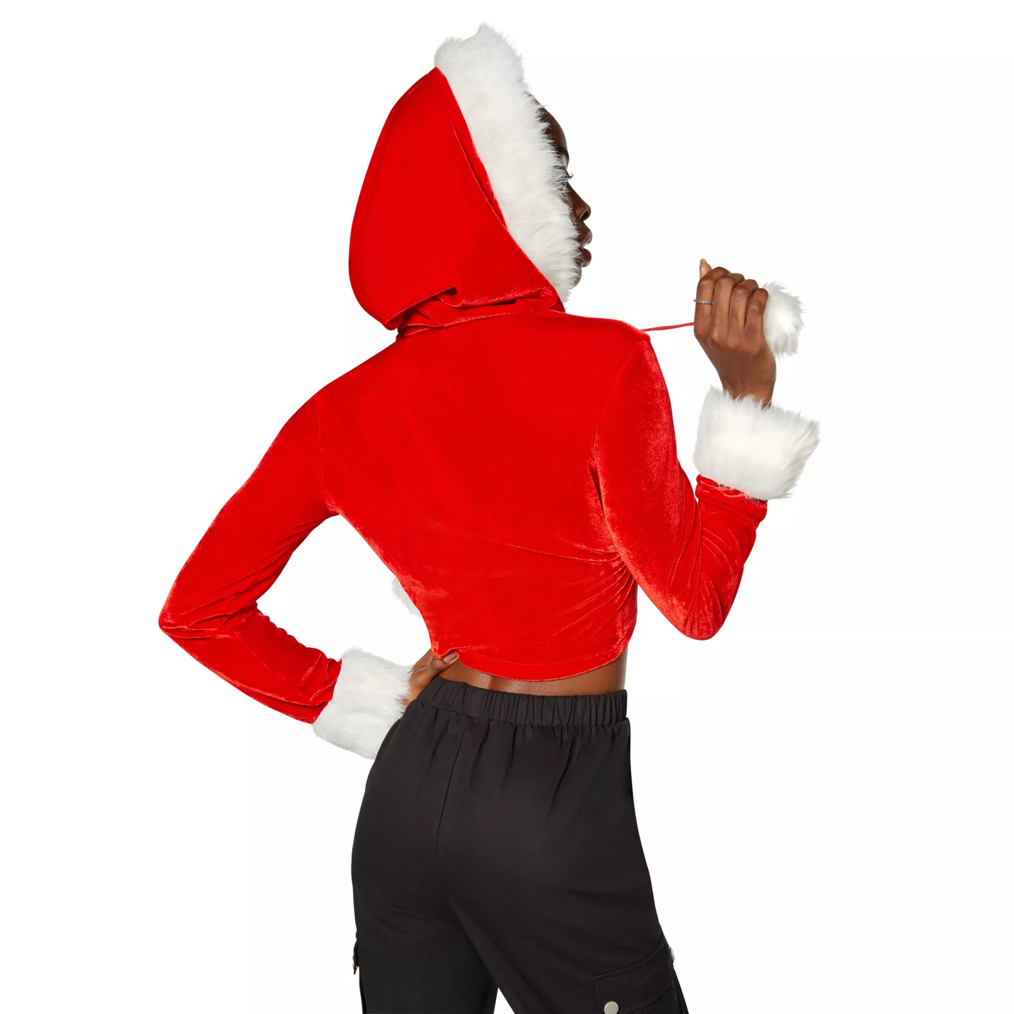 You'll look hotter than chestnuts on an open flame when you decide to rock this sexy Cropped Santa Hoodie with Faux Fur Trim. Nothing screams "Ho ho ho" more than this seductive red hoodie that looks just like Santa's jolly red suit. You'll have plenty of Christmas spirit to spread around once you slip on this cropped Santa hoodie for the holidays. Have yourself an outrageous Christmas!