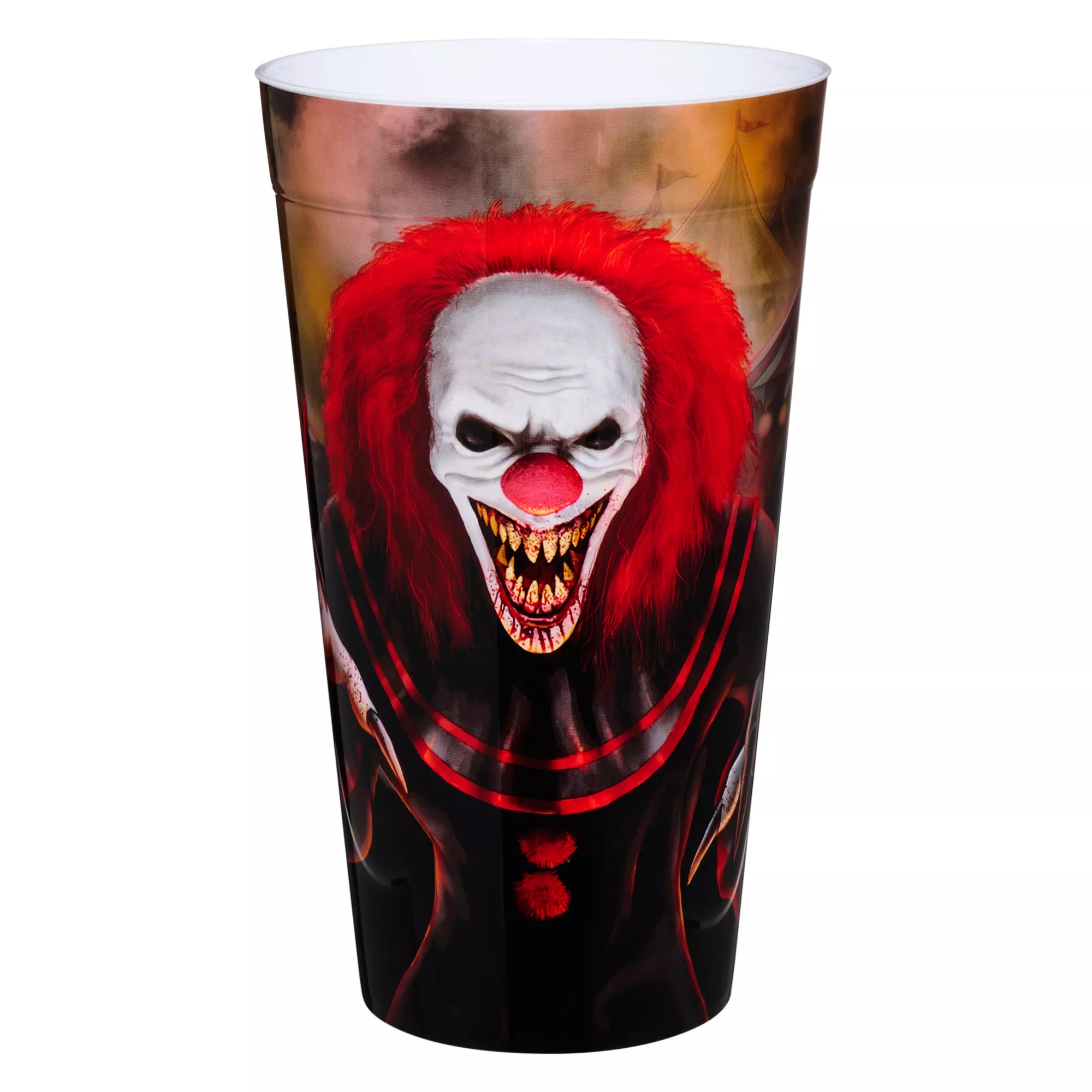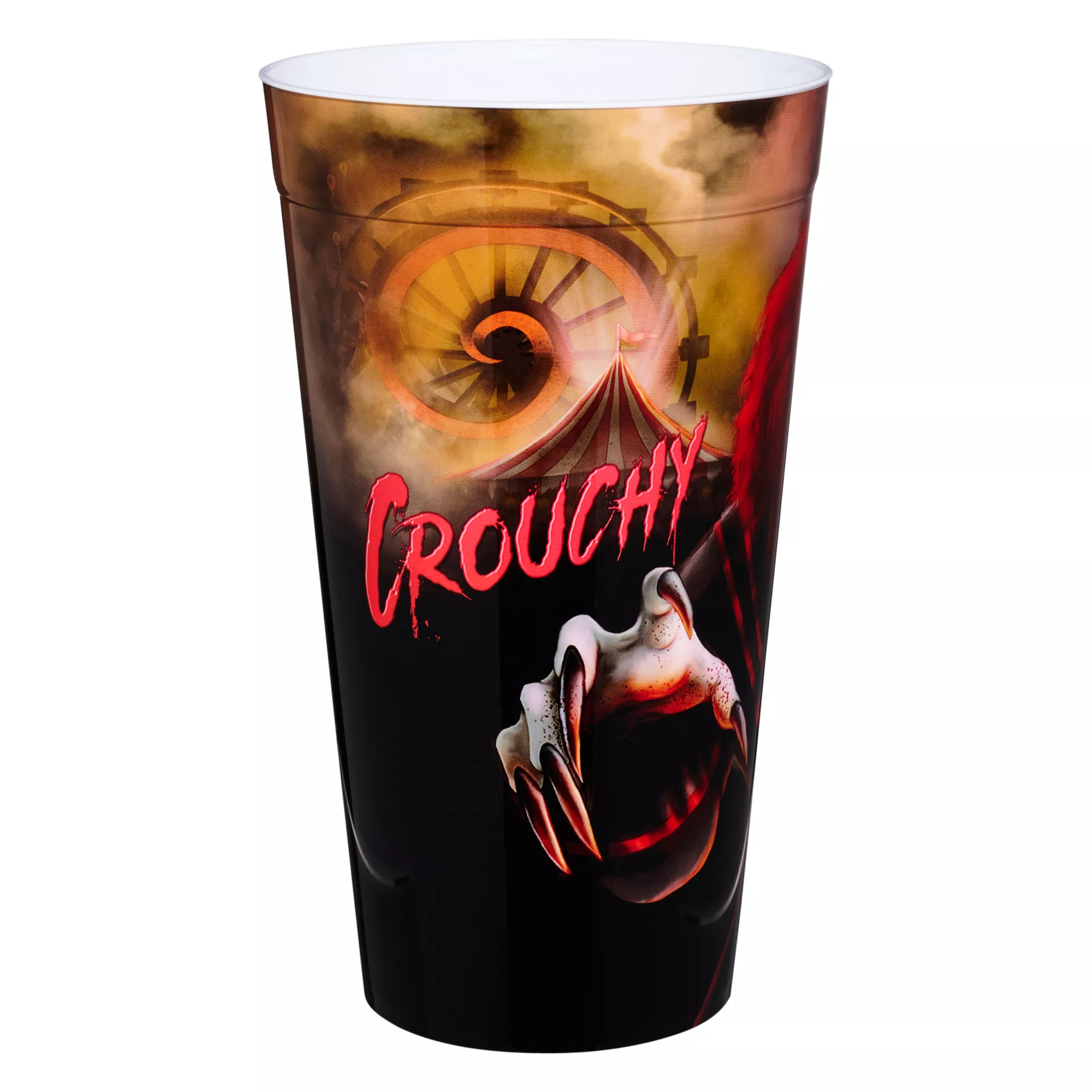 Show off your love for horror when you add this epic Crouchy cup to your drinkware collection. This 22 ounce plastic cup features an image of the creepy clown preparing to attack. Enjoy your favorite beverage and celebrate the crazed carney!