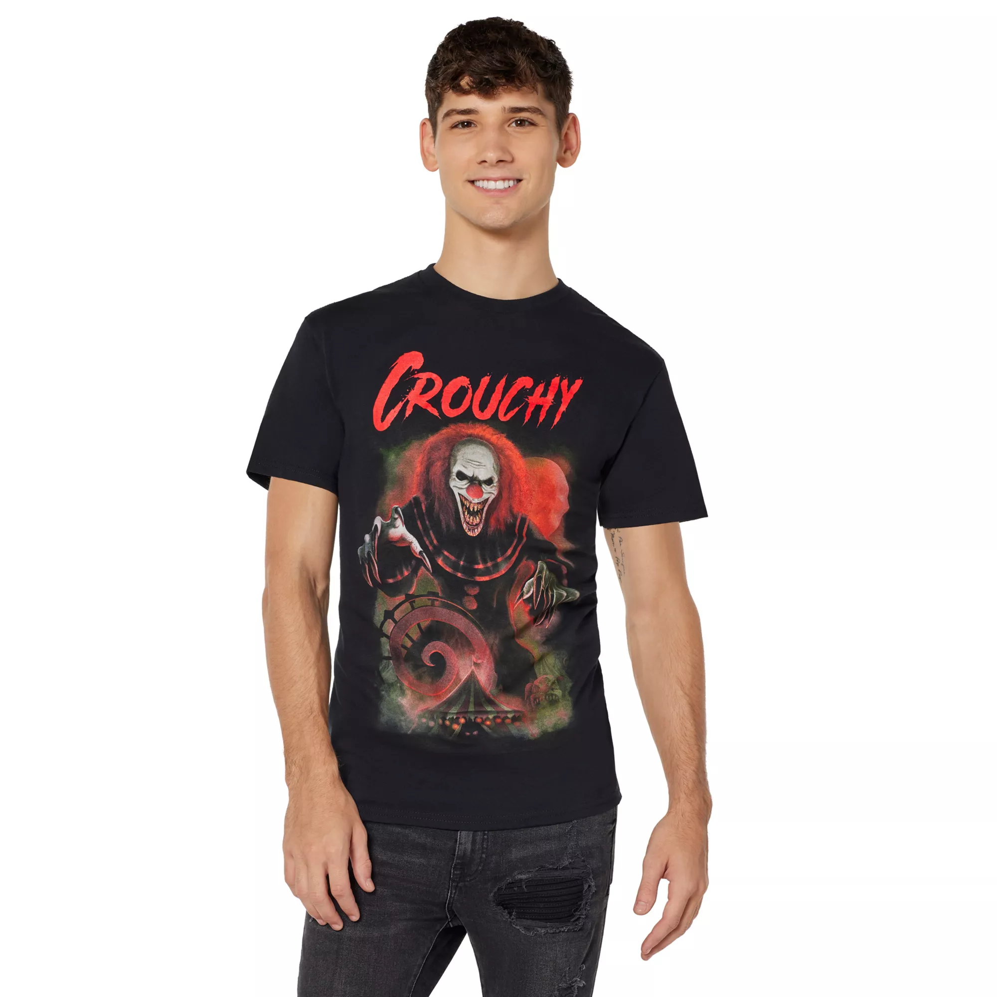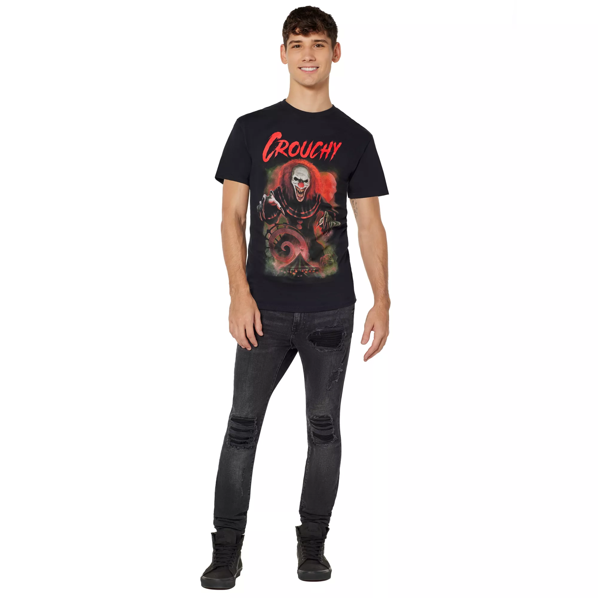 Celebrate your favorite scary clown animatronic with this Crouchy t shirt! This graphic tee features Crouchy's blood-spattered teeth and scary smile in fear-inducing detail. Wear this Crouchy tee as its own costume or during the Halloween season to up the scare factor.