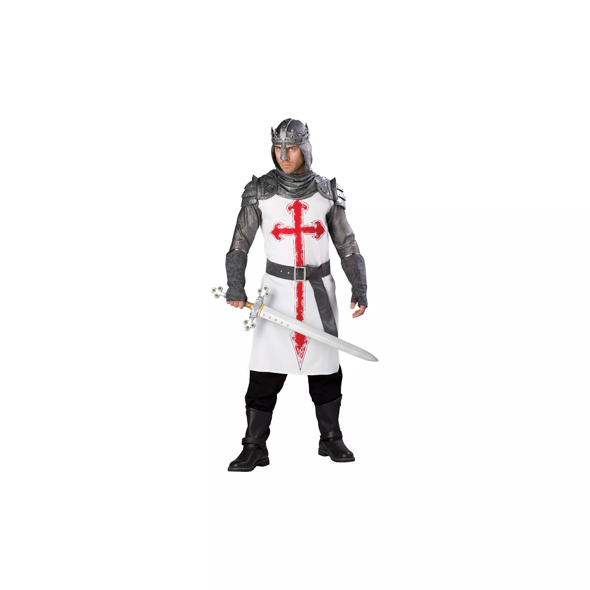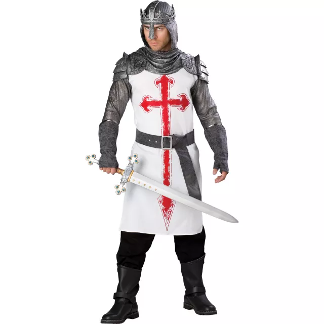 The Crusades were religiously sanctioned military campaigns called by the pope and waged by kings and nobles who volunteered to take up the cross. Reenact your own campaign in this authentic looking Crusader adult mens costume and behave like a nobleman - of course you may partake of the fair maidens and pillage and plunder a bit as you proceed on your campaign - after all, it's Halloween!