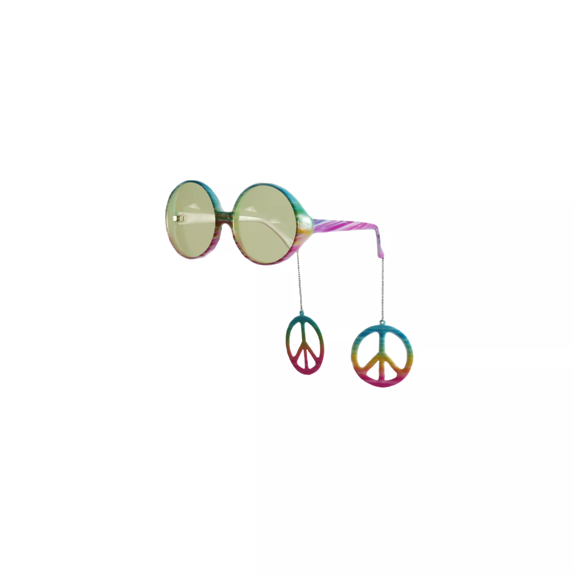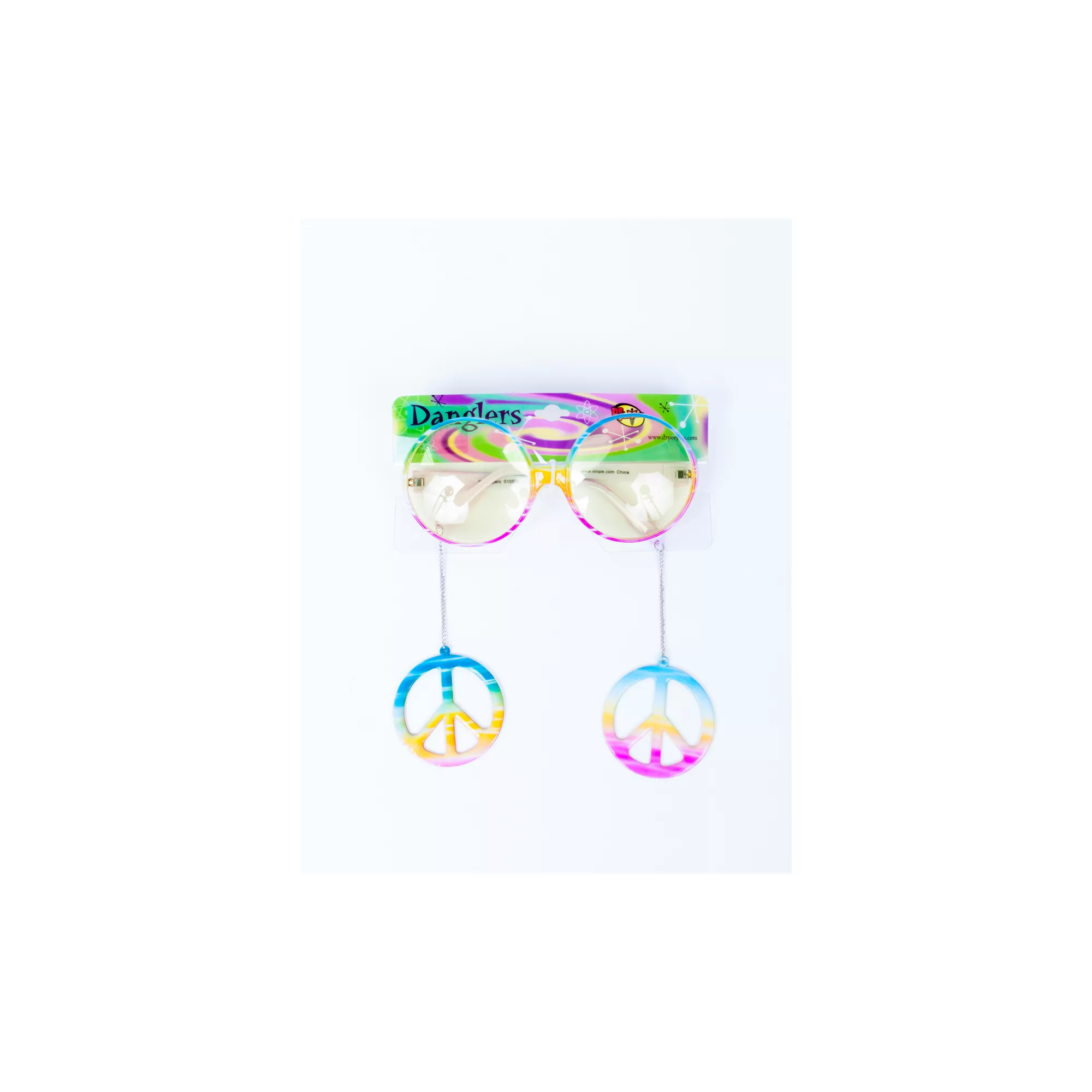 What a long, strange trip it's been - complete your trippy hippie costume with these unique multi-color glasses. Check out the dangling peace signs - cool!