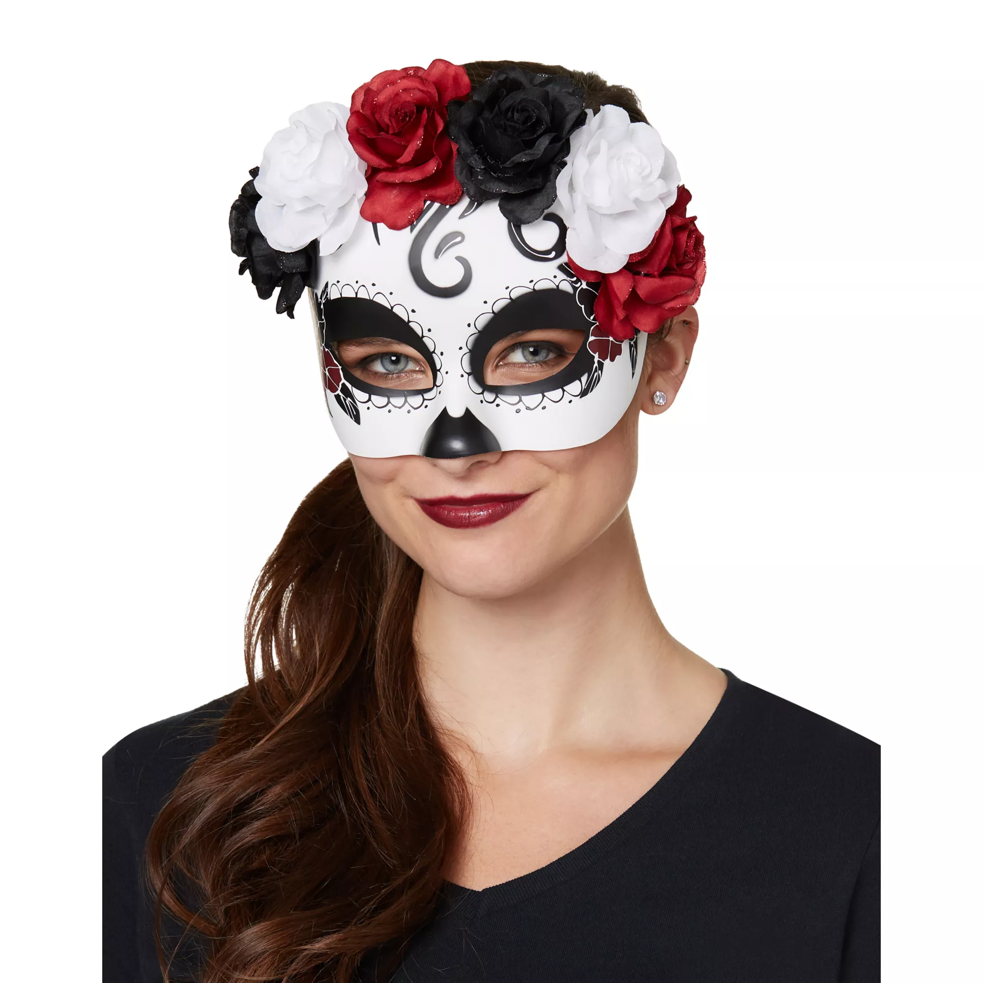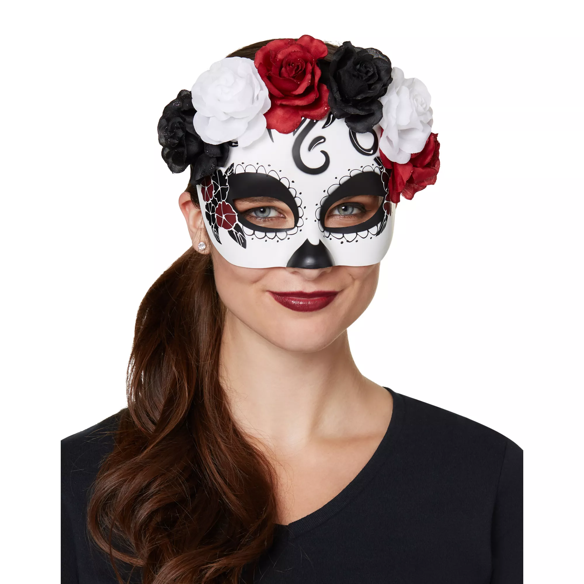 Celebrate Day of the Dead with some floral style with this Day of the Dead Rose Half Mask. This mask is sure to have you looking your best all night and you'll fit right in at any Day of the Dead party.