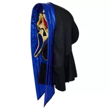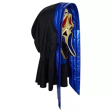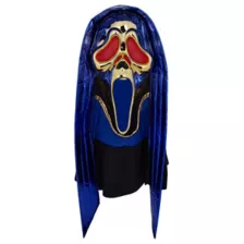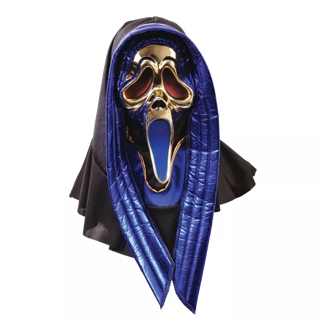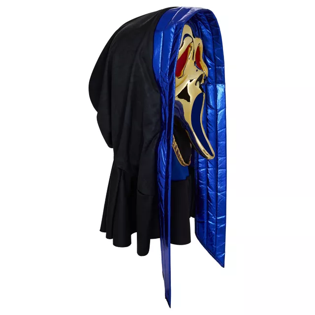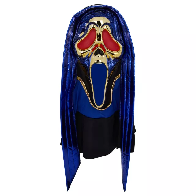 Straight from the Fog and into the party. From slaying Survivors to just looking like a slasher at the costume contest, this Dead by Daylight Masquerade Ghost Face® Mask will have you dressed to kill. This exclusive look features a luxe metallic finish in gold and blue with red netting in the eyes for visibility. Complete with an embossed jacquard-style hood and quilted blue metallic finish draping framing the mask, it's so elegant it's scary. A must-have for your Ghost Face® collection for next cosplay-ready photo op. Just don't forget to watch your back... he's never far.