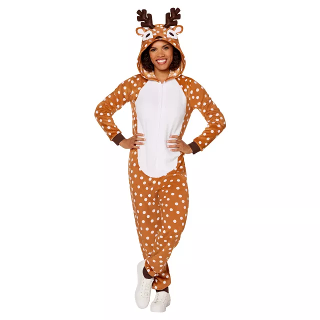 Oh Deer! Prance through the forest and into the streets this Halloween when you dress up in this Deer costume. This costume is a one-piece suit with zipper closure and looks just like a cute forest dweller. Featuring a blue eyed face and antlers on the hood to go along with this white spotted jumpsuit this deer costume will have you feeling like a million bucks!