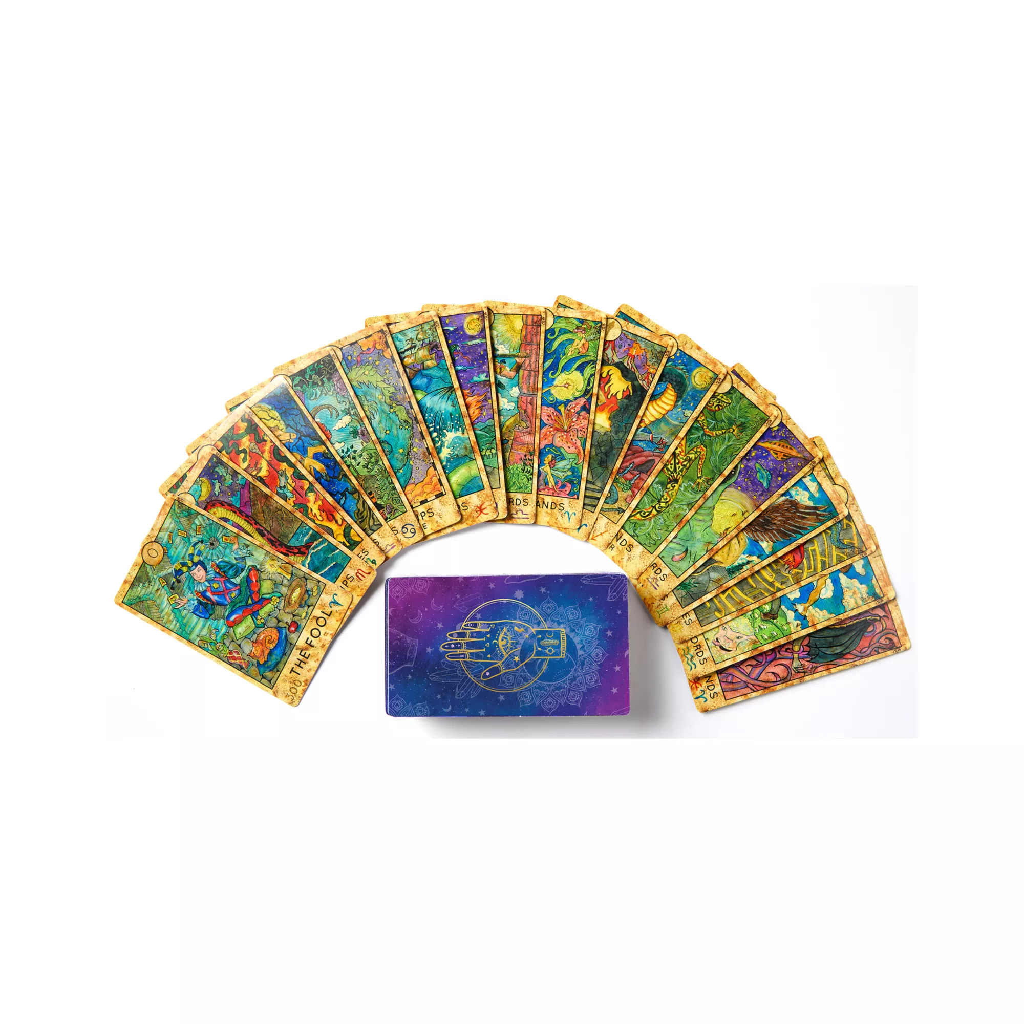 Take a journey into the world of tarot with this exclusive prism edition deck of deluxe tarot cards. This 78-card deck of holographic paper tarot cards features 22 Major Arcana and 56 Minor Arcana cards. Stunning artwork adorns each card, making this deck ideal for your next social gathering!