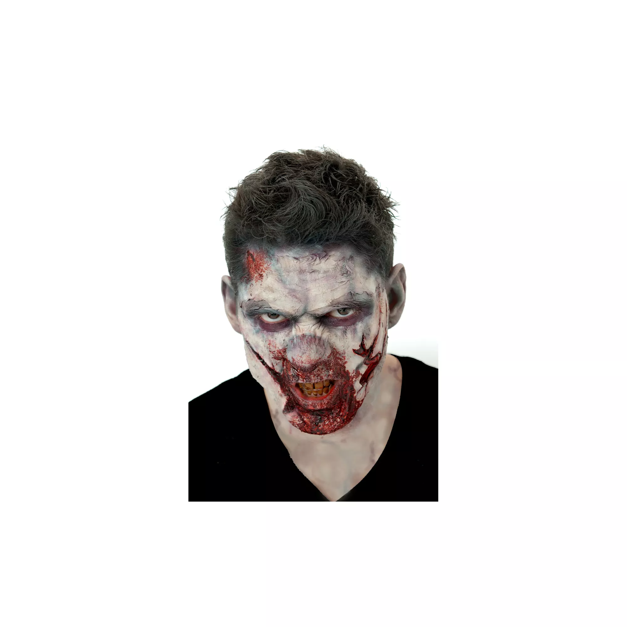 Walk among the dead with the Devoured Zombie Application Kit. People will run in fear as you wear this blood-stained face with facial scars.