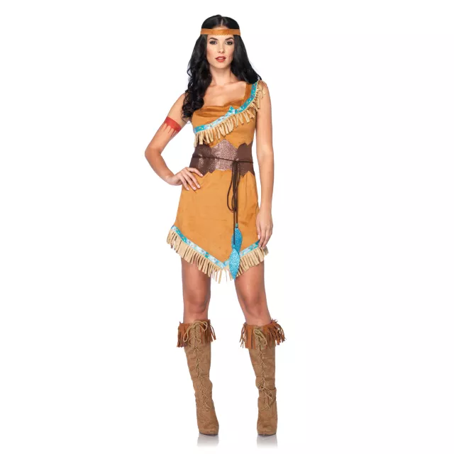 The princess with a rebellious streak is here to take on Halloween. The Officially Licensed Disney Pocahontas Adult Women's Costume lets you show your free spirit in this one shouldered dress with fringe detail and leaf belt.