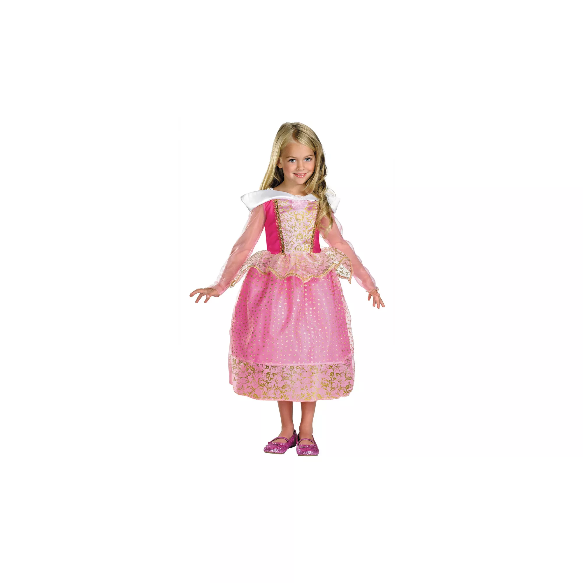 This pretty and officially licensed Disney Princess Aurora Classic child costume is perfection. Only a princess is worthy to wear the pink gown, complete with portrait collar, gold-trimmed bodice, overskirt and character cameo on neck.
