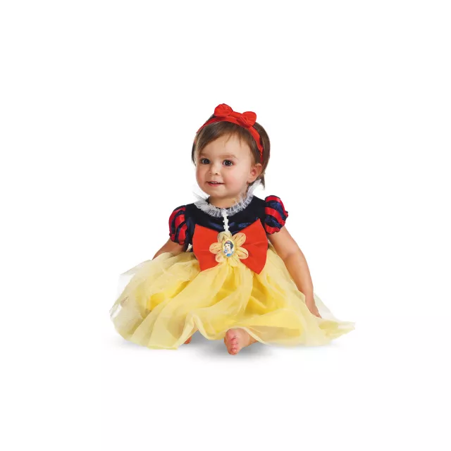 Not even the evilest of queens could deny the beauty of your little girl when you dress her in this officially licensed Disney Princess Snow White Baby Costume. Beautiful dress features a character cameo and comes complete with a matching headband and attached bow.